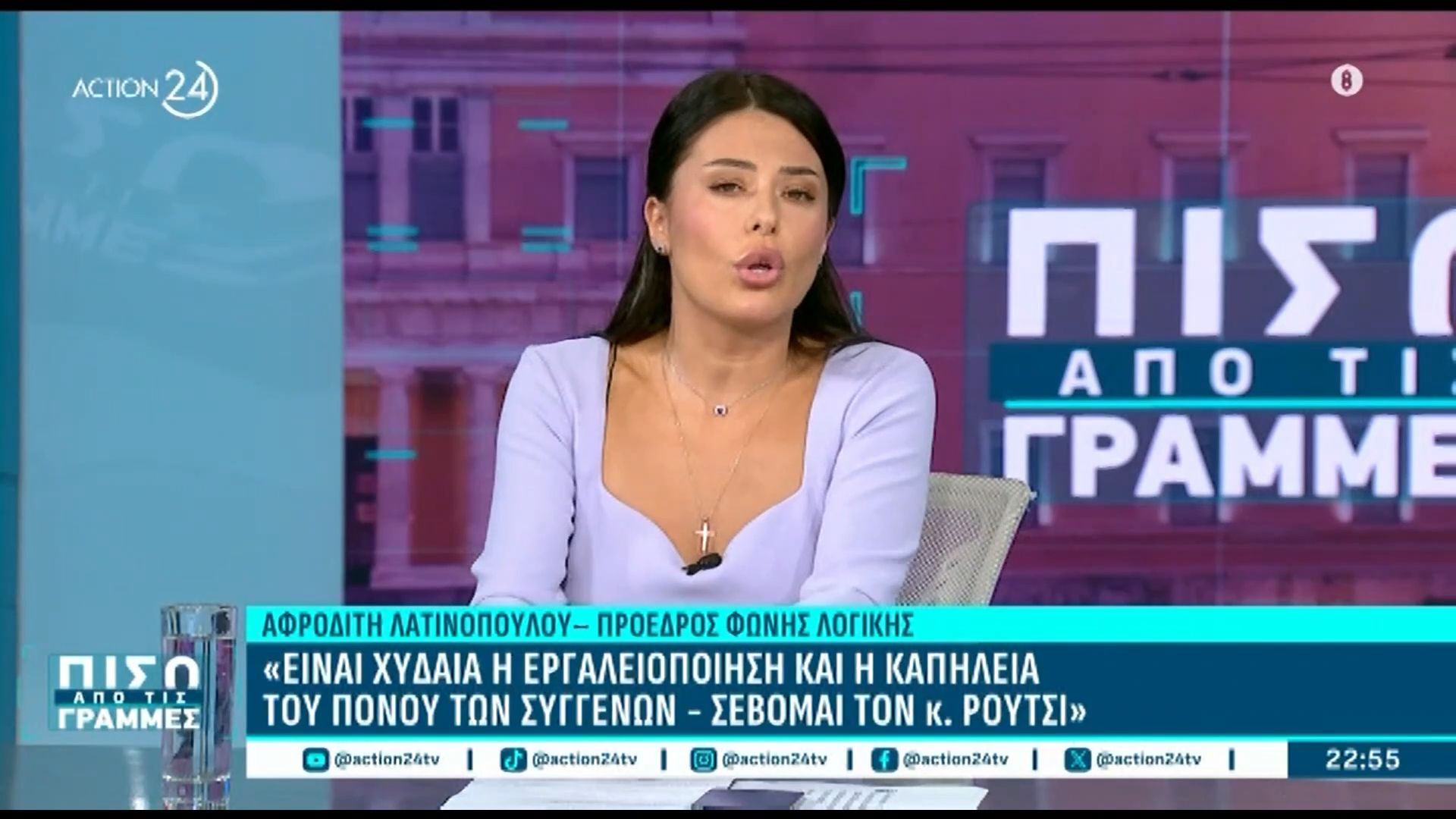Η Αφροδίτη Λατινοπούλου εκφράζει τη διαφωνία της σχετικά με τη χρήση της παλαιστινιακής σημαίας από τον Πάνο Ρούτσι, κάνοντας λόγο για έλλειψη σεβασμού και ευαισθησίας. Αναφέρει ότι οι ενέργειες αυτές προσβάλλουν την ιστορία και τις αξίες της χώρας, υποδεικνύοντας ότι οι υπεύθυνοι θα έπρεπε να ντρέπονται.