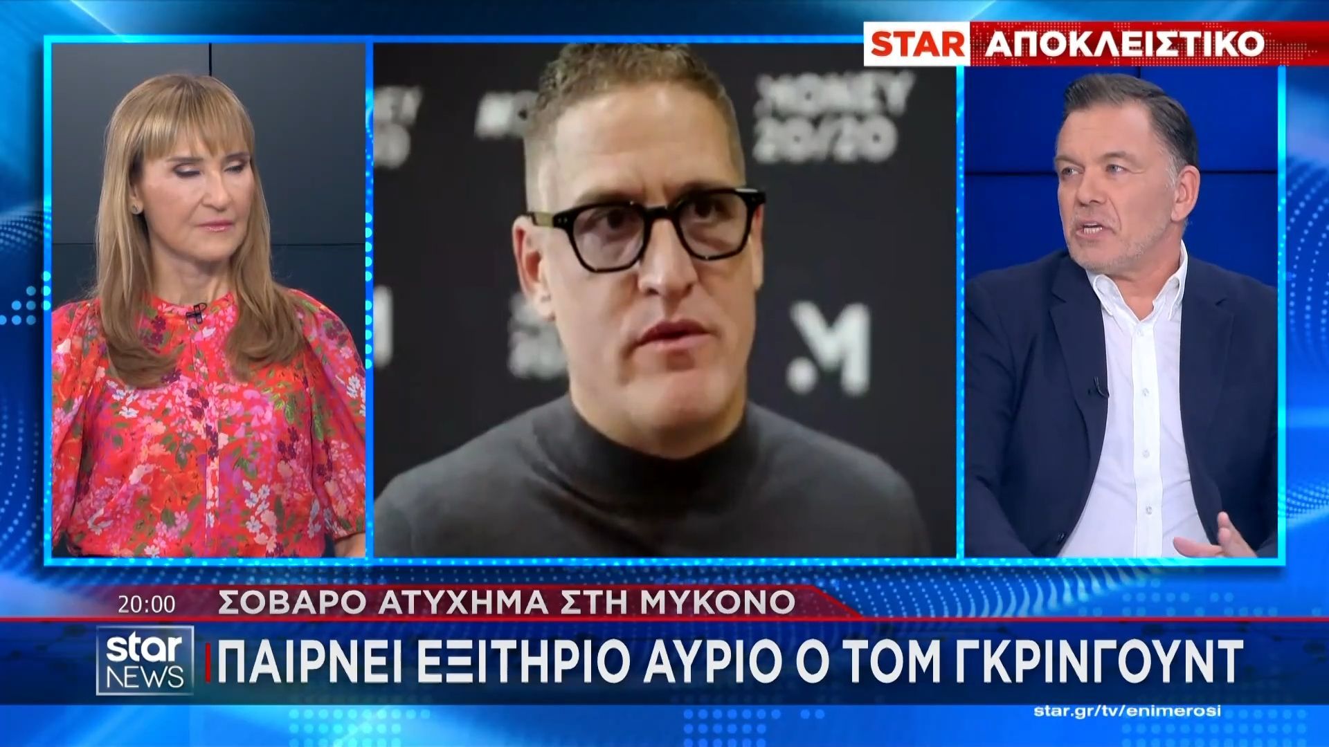 Ο Τομ Γκρίνγουντ αναμένεται να πάρει εξιτήριο από το νοσοκομείο αύριο, μετά από το σοβαρό ατύχημα που υπέστη στην Μύκονο. Οι ιατρικές αρχές επιβεβαίωσαν ότι η κατάσταση της υγείας του έχει βελτιωθεί σημαντικά και ότι δεν υπάρχουν πλέον άμεσοι κίνδυνοι.