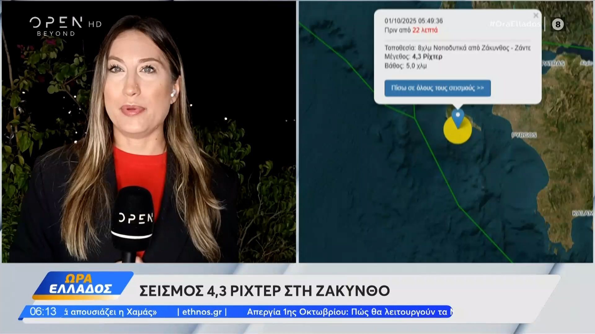 Σεισμική δόνηση 4,3 βαθμών της κλίμακας Ρίχτερ σημειώθηκε σήμερα το πρωί στη Ζάκυνθο, στις 6:00. Ο σεισμός έγινε αισθητός σε πολλές περιοχές του νησιού, προκαλώντας ανησυχία στους κατοίκους.