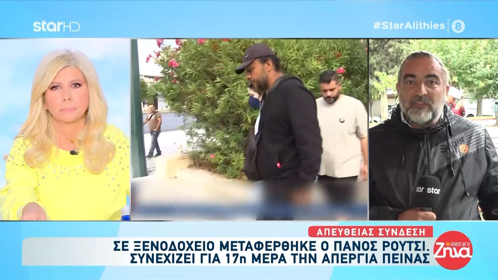 Ο Πάνος Ρούτσι, που συνεχίζει την απεργία πείνας για 17η ημέρα, μεταφέρθηκε σε ξενοδοχείο ύστερα από σύσταση γιατρών. Η απόφαση αυτή ελήφθη προκειμένου να διασφαλιστεί η υγεία του, καθώς η πολυκοσμία στο Σύνταγμα είχε αρχίσει να επηρεάζει την κατάσταση του.