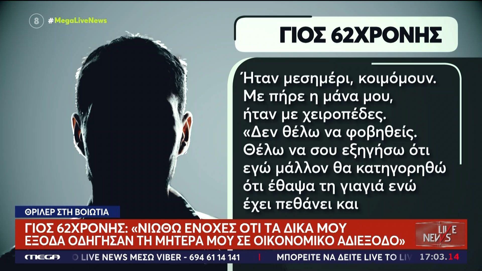 Ο γιος της, που βρίσκεται στο πλευρό της, εκφράζει τις ενοχές του για την κατάσταση που έχει δημιουργηθεί, υποστηρίζοντας ότι οι δικές του οικονομικές ανάγκες συνέβαλαν στην πίεση που βίωσε η μητέρα του. Οι δηλώσεις του ρίχνουν φως στις προκλήσεις που αντιμετώπιζαν, υπογραμμίζοντας τη σύνθετη φύση των οικογενειακών σχέσεων και των οικονομικών δυσκολιών.