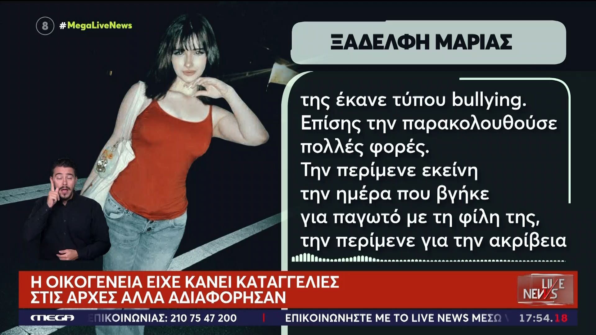 Μια 17χρονη Ελληνοαμερικανίδα και η φίλη της έχασαν τη ζωή τους όταν ένα τζιπ τις παρέσυρε. Ο δράστης, συμμαθητής της κοπέλας, φέρεται να την παρενοχλούσε επί μήνες, με την οικογένεια της να έχει υποβάλει καταγγελίες στις Αρχές, οι οποίες δεν αντέδρασαν.