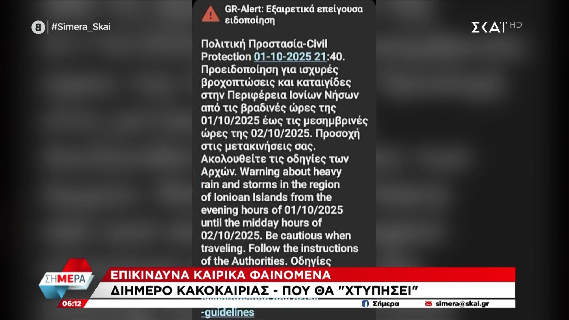 Αναμένονται επικίνδυνα καιρικά φαινόμενα τις επόμενες ημέρες, με ισχυρές βροχές και καταιγίδες να πλήττουν πολλές περιοχές της χώρας. Οι μετεωρολόγοι προειδοποιούν για πιθανές πλημμύρες και ισχυρούς ανέμους, καλώντας τους πολίτες να είναι προσεκτικοί και να αποφεύγουν τις άσκοπες μετακινήσεις.