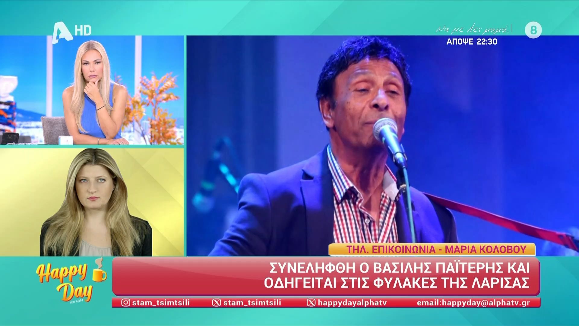 Ο Βασίλης Παϊτέρης συνελήφθη χθες το βράδυ κατά τη διάρκεια τυχαίου τροχονομικού ελέγχου. Οι αστυνομικές αρχές εντόπισαν στοιχεία που συνδέουν τον γνωστό καλλιτέχνη με κατηγορίες που αφορούν παραβάσεις του νόμου.