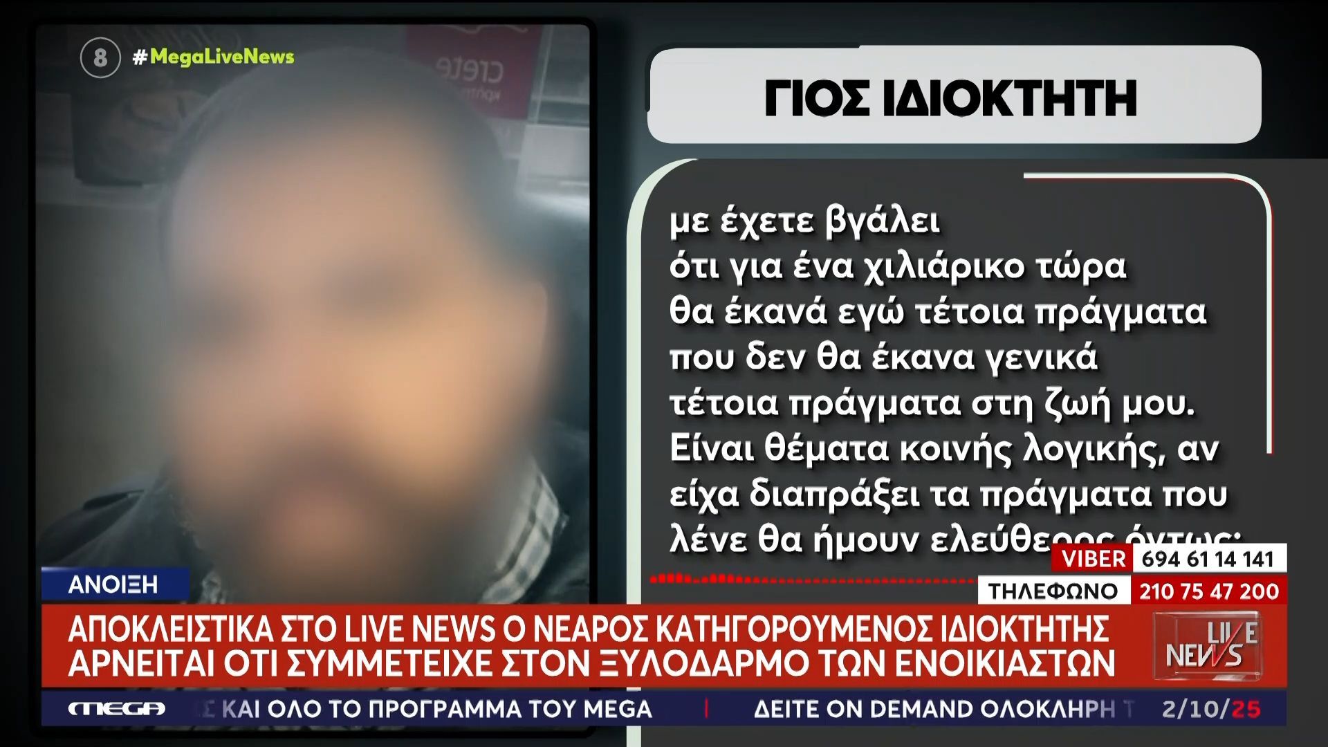 Ο γιος του ιδιοκτήτη του σπιτιού στην Άνοιξη, κατηγορούμενος για τη συμμετοχή στον ξυλοδαρμό ενοικιαστών, μίλησε αποκλειστικά στο «Live News». Σε δηλώσεις του, αρνείται οποιαδήποτε εμπλοκή στην υπόθεση και εκφράζει την αγανάκτησή του για τις κατηγορίες που του αποδίδονται.