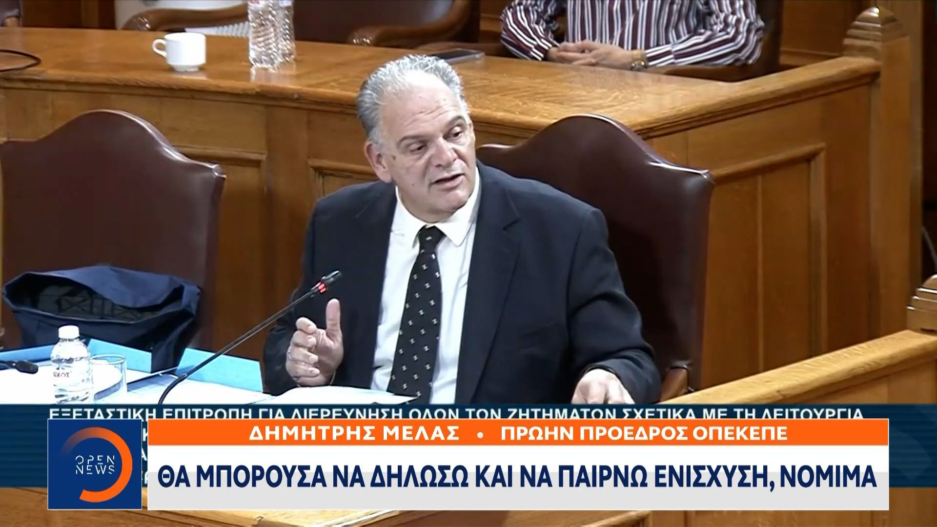 Στην εξεταστική επιτροπή κατέθεσε ο πρώην πρόεδρος του ΟΠΕΚΕΠΕ, Δημήτρης Μελάς, υποστηρίζοντας την αθωότητά του. Ανέφερε ότι δεν έχει διαπράξει καμία παράνομη πράξη, παρά τις σοβαρές κατηγορίες που τον αφορούν και την έντονη δημοσιότητα γύρω από την υπόθεση.
