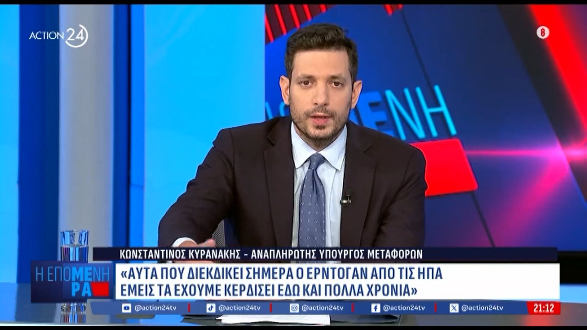 Ο Κωνσταντίνος Κυρανάκης αναφέρθηκε στις πρόσφατες διεκδικήσεις του Ερντογάν από τις Ηνωμένες Πολιτείες, τονίζοντας ότι η Ελλάδα έχει ήδη εξασφαλίσει σημαντικά οφέλη που η Τουρκία τώρα επιδιώκει. Ο αναπληρωτής υπουργός μεταφορών υπογράμμισε τη στρατηγική θέση της χώρας μας στην περιοχή και την ανάγκη για ενίσχυση των συμμαχιών της.