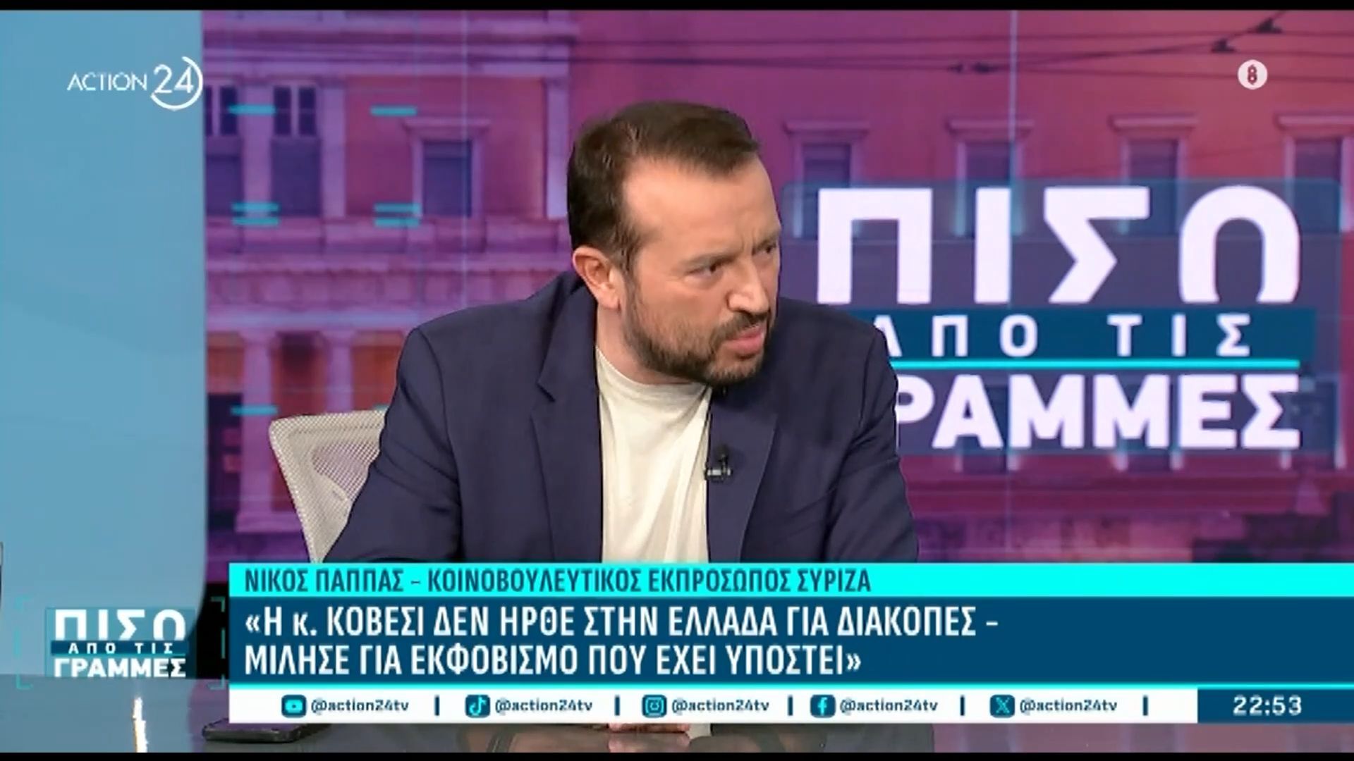 Ο Νίκος Παππάς αναφέρθηκε στην επίσκεψη της κ. Κοβέσι στην Ελλάδα, υπογραμμίζοντας ότι δεν πρόκειται για τουριστική επίσκεψη. Η κ. Κοβέσι, επικεφαλής της Ευρωπαϊκής Εισαγγελίας, αποκάλυψε ότι έχει υποστεί εκφοβισμό, γεγονός που εγείρει σοβαρά ερωτήματα σχετικά με την ασφάλεια και την ελευθερία των δικαστικών λειτουργών στην Ευρώπη.