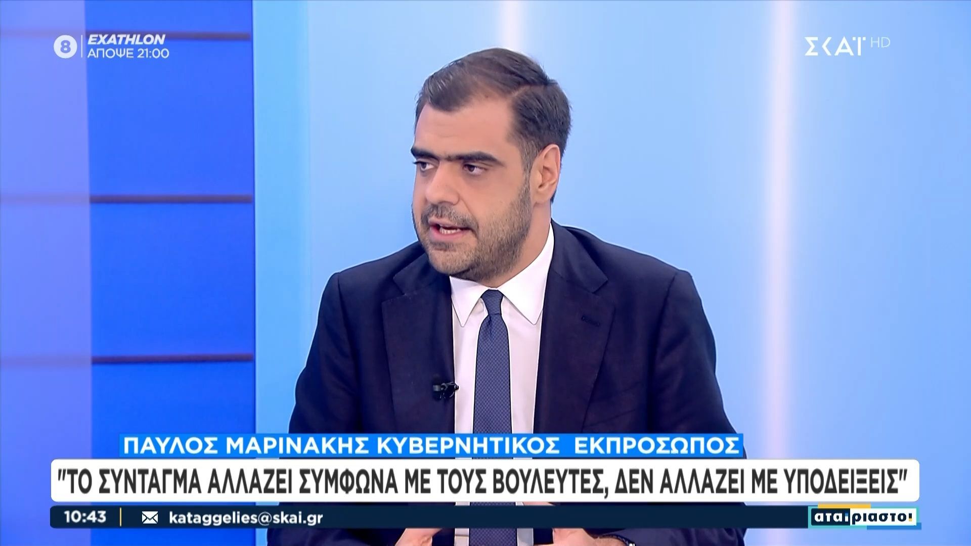 Κριτική στις εξωτερικές παρεμβάσεις για το Σύνταγμα από τον Π. Μαρινάκη, με έμφαση στον ρόλο των εκλεγμένων βουλευτών στις συνταγματικές αλλαγές
