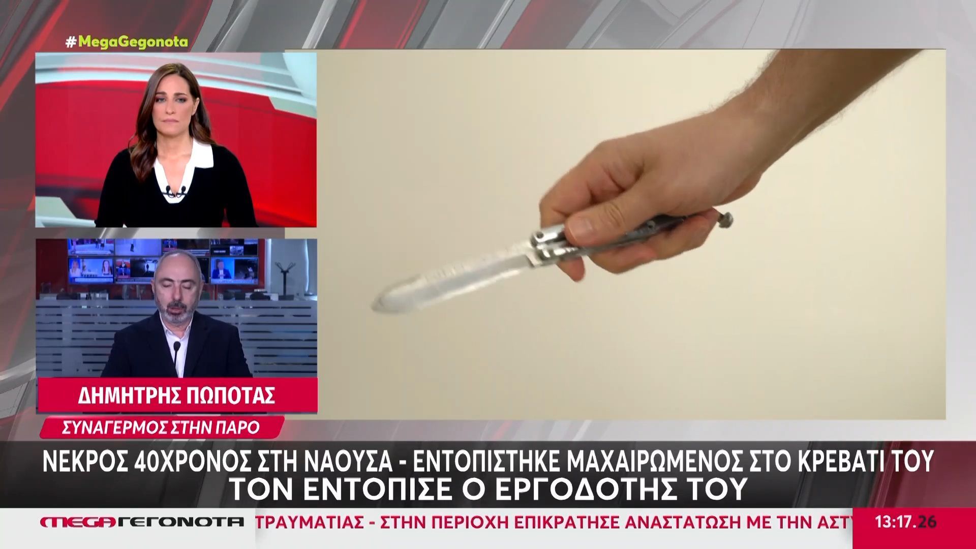 Οι πρώτες πληροφορίες αναφέρουν ότι ο άνδρας φέρει πέντε θανάσιμα μαχαιριά σε διάφορα σημεία του σώματός του, υποδηλώνοντας εγκληματική ενέργεια. Η Αστυνομία έχει ξεκινήσει έρευνες για την υπόθεση, με τα κίνητρα της επίθεσης να φαίνεται ότι είναι προσωπικά.