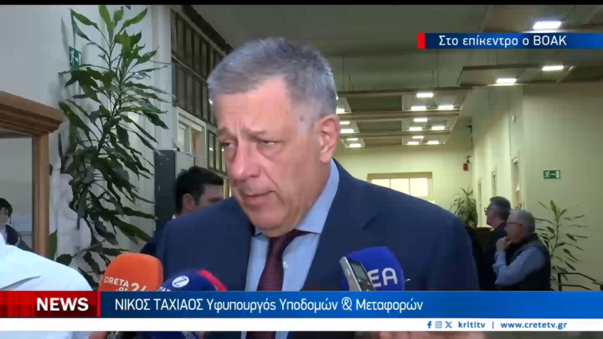 Στη σύσκεψη που πραγματοποιήθηκε στην αντιπεριφέρεια Χανίων, ο υφυπουργός Υποδομών και Μεταφορών Νίκος Ταχιάος ανακοίνωσε ότι το Υπουργείο θα εξετάσει τις ενστάσεις του ΤΕΕ Δυτικής Κρήτης για την κατασκευή του ΒΟΑΚ Χανιά-Κίσσαμος. Οι συμμετέχοντες, μεταξύ των οποίων και δήμαρχοι της περιοχής, τόνισαν τη σημασία της έγκρισης της Μελέτης Περιβαλλοντικών Επιπτώσεων, που είναι προαπαιτούμενη για την έναρξη του έργου.