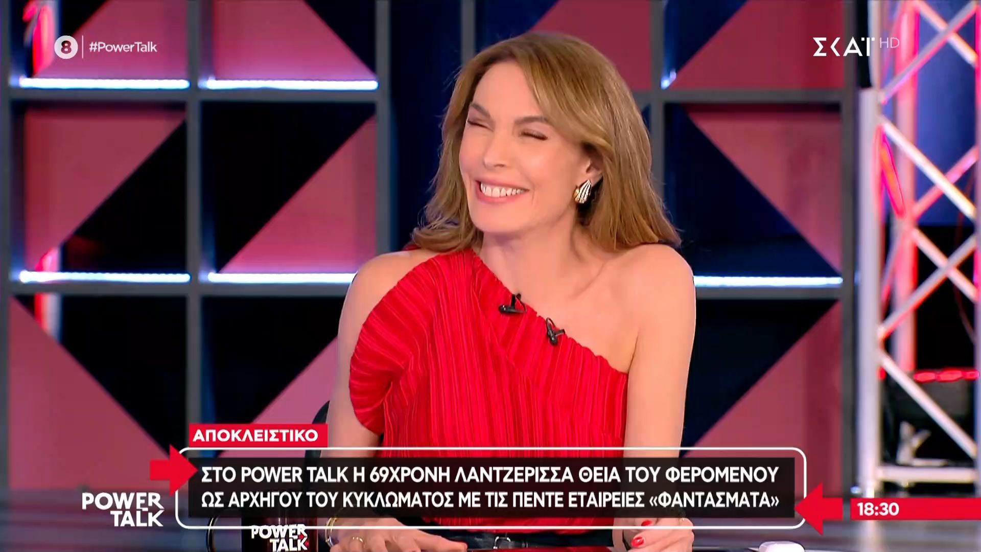 Στο πρόσφατο επεισόδιο του Power Talk, η 69χρονη λαντζέρισσα, που συνδέεται με τον φερόμενο ως αρχηγό ενός κυκλώματος, προκαλεί γέλια με τις αποκαλύψεις σχετικά με πέντε εταιρίες «φαντάσματα» που φέρουν το όνομά της. Οι λεπτομέρειες γύρω από τη δραστηριότητα αυτών των εταιριών και η ταχύτητα με την οποία ιδρύθηκαν είναι αδιάφορες, καθώς η κατάσταση αποκαλύπτει πτυχές του οργανωμένου εγκλήματος.