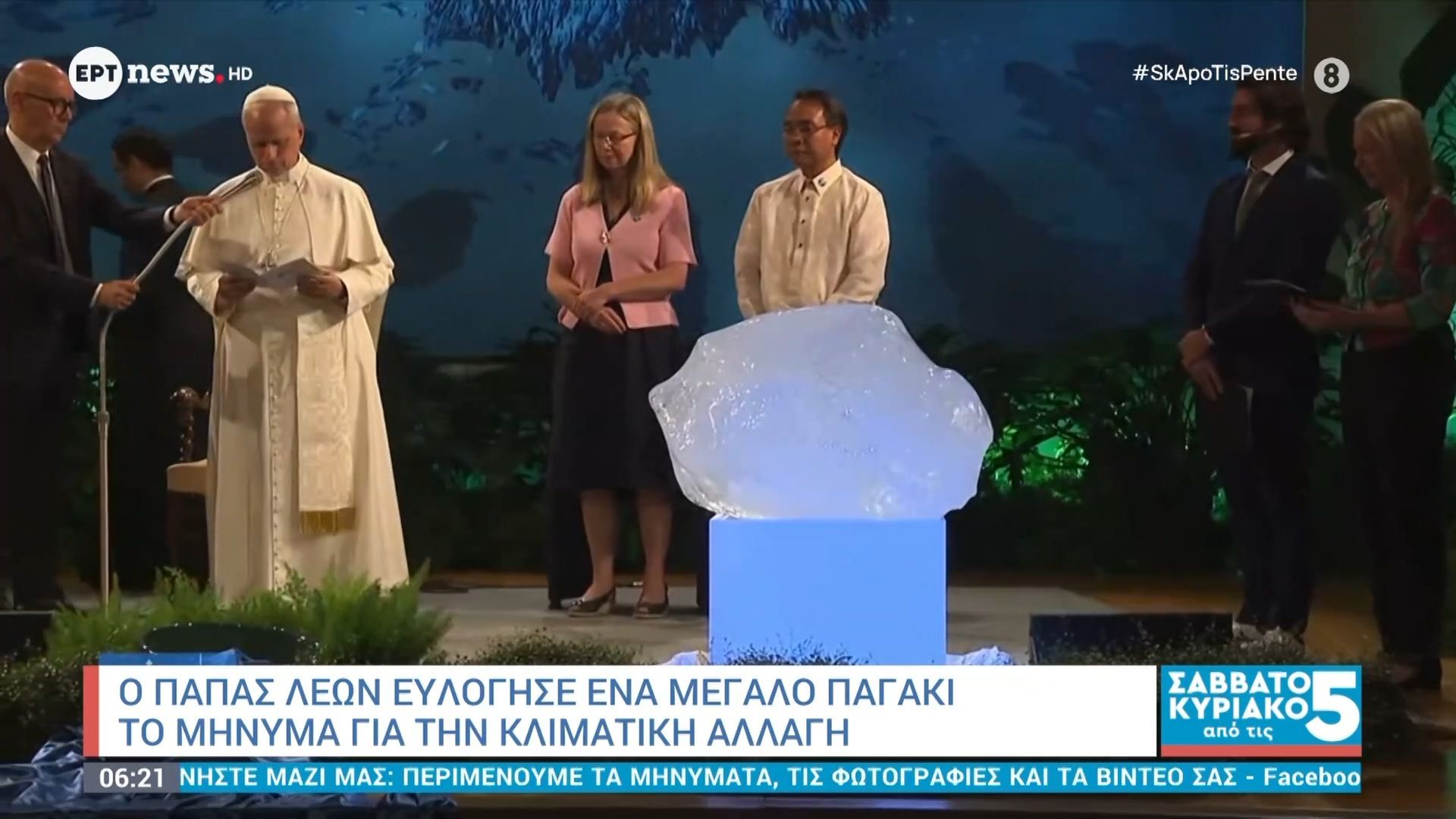 Ο Πάπας Λέων ευλόγησε ένα μεγάλο παγάκι στην πλατεία του Βατικανού, εν μέσω μιας συμβολικής εκδήλωσης που στοχεύει να ευαισθητοποιήσει το κοινό σχετικά με την κλιματική αλλαγή. Το παγάκι, το οποίο αντιπροσωπεύει τη διάβρωση των πάγων στους πόλους, έρχεται να μας υπενθυμίσει τις σοβαρές συνέπειες της κλιματικής κρίσης.