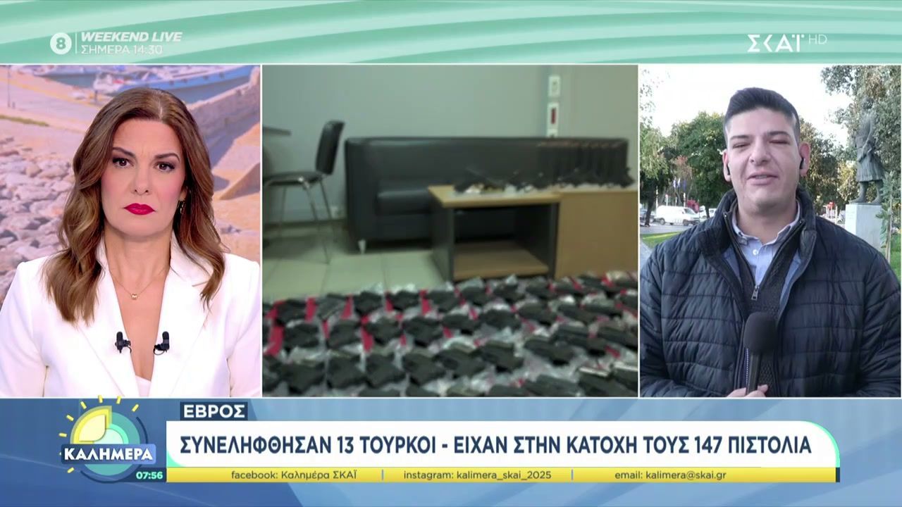 Συνελήφθησαν 13 Τούρκοι στην περιοχή του Έβρου, οι οποίοι είχαν στην κατοχή τους 147 όπλα. Οι αρχές προχώρησαν στη σύλληψη σε συνεργασία με τις ειδικές δυνάμεις, στο πλαίσιο επιχείρησης για την καταπολέμηση της παράνομης οπλοκατοχής και των διασυνοριακών εγκληματικών δραστηριοτήτων.