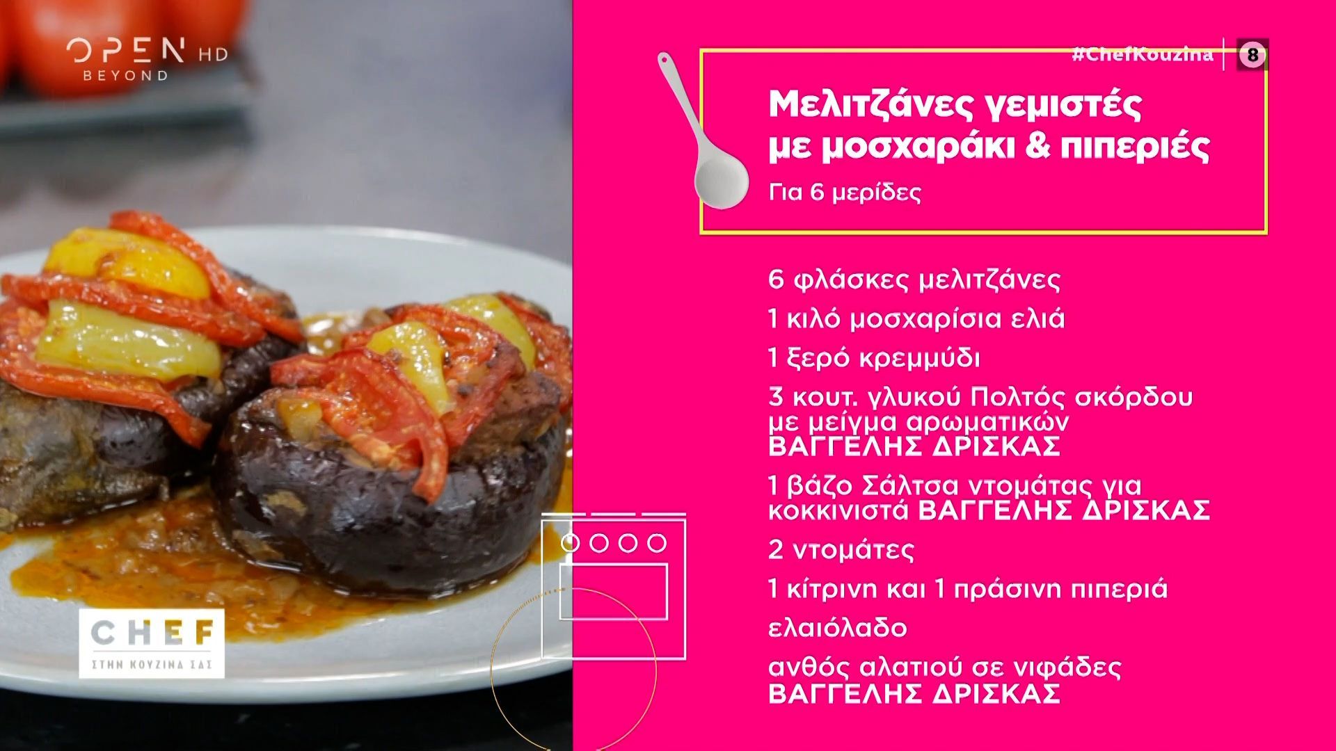 Ο σεφ Βαγγέλης Δρίσκας αναλύει βήμα-βήμα τη διαδικασία παρασκευής, από την προετοιμασία των υλικών έως το ψήσιμο. Οι γεμιστές μελιτζάνες αποτελούν μια εξαιρετική επιλογή για το Κυριακάτικο τραπέζι, που σίγουρα θα εντυπωσιάσει τους καλεσμένους σας.