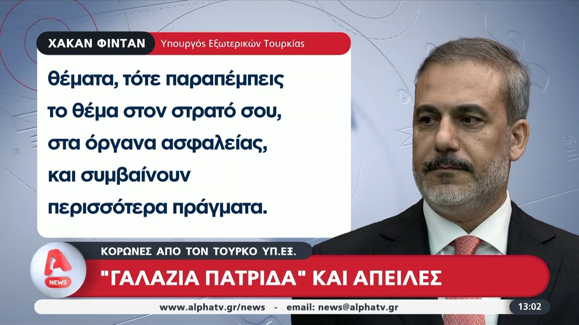 Ο Τούρκος Υπουργός Εξωτερικών, Χακάν Φιντάν, προχώρησε σε προκλητικές δηλώσεις που ενδέχεται να κλιμακώσουν τις ήδη τεταμένες σχέσεις με την Ελλάδα. Οι δηλώσεις του αναφέρονται στη στρατηγική της “Γαλάζιας Πατρίδας”, η οποία εγείρει ανησυχίες για τις προθέσεις της Τουρκίας στην περιοχή.
