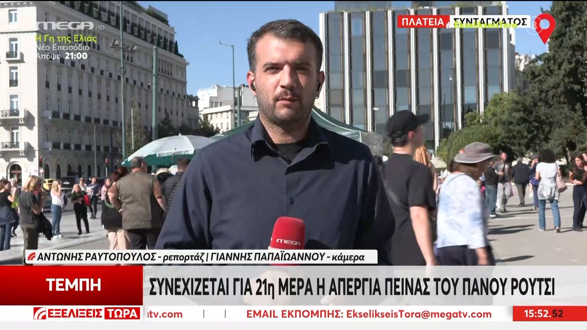 Η απεργία πείνας του Πάνου Ρούτσι διανύει την 21η ημέρα της, συγκεντρώνοντας το ενδιαφέρον και την αλληλεγγύη του κόσμου. Χιλιάδες πολίτες αναμένεται να συγκεντρωθούν στο Σύνταγμα, εκφράζοντας τη στήριξή τους στον αγώνα του και τα αιτήματα που προβάλλει.