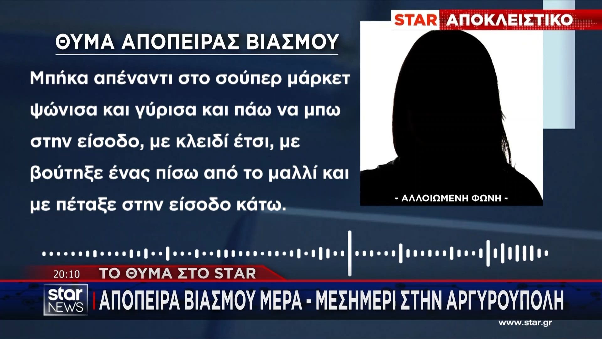 Στην Αργυρούπολη, μια γυναίκα έπεσε θύμα απόπειρας βιασμού σε δημόσιο χώρο κατά τη διάρκεια της ημέρας. Το περιστατικό προκάλεσε σοκ στην τοπική κοινωνία και οι αρχές έχουν ξεκινήσει έρευνες για τον εντοπισμό του δράστη.