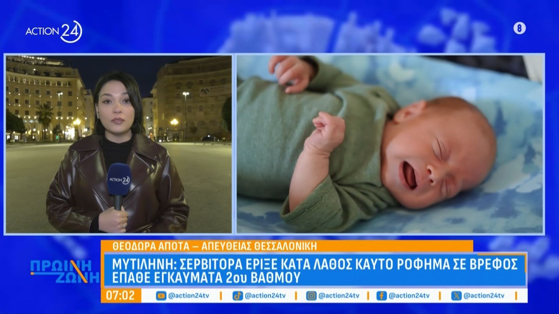 Στην Μυτιλήνη, ένα σοβαρό περιστατικό σημειώθηκε όταν σερβιτόρα έριξε κατά λάθος καυτό ρόφημα πάνω σε βρέφος. Το παιδί, που υπέστη εγκαύματα 2ου βαθμού, μεταφέρθηκε άμεσα στο νοσοκομείο για την απαραίτητη ιατρική φροντίδα.