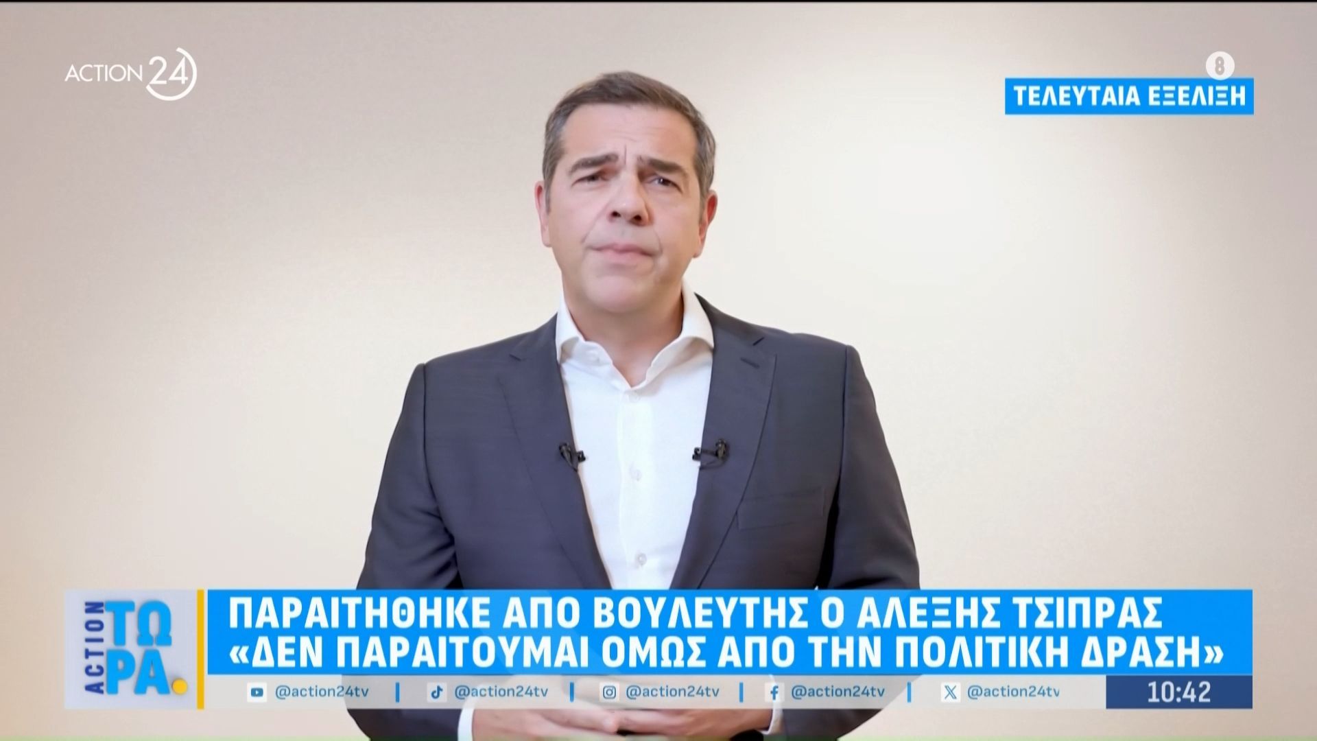 Ο Αλέξης Τσίπρας ανακοίνωσε την απόφασή του να παραιτηθεί από το βουλευτικό αξίωμα, επισημαίνοντας ότι αυτό δεν σημαίνει την αποχώρησή του από την πολιτική σκηνή. Σε δηλώσεις του, τόνισε τη δέσμευσή του να συνεχίσει τη δράση του και να συμβάλει στην προάσπιση των αξιών της Αριστεράς.