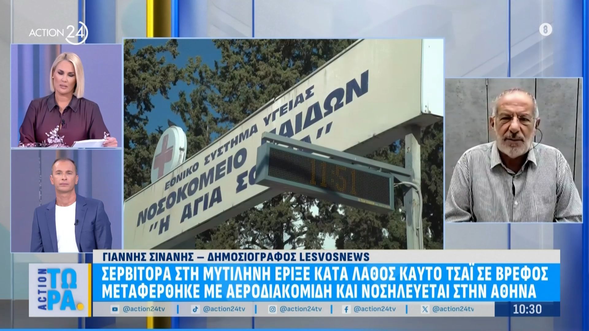Στην Μυτιλήνη, ένα σοβαρό περιστατικό σημειώθηκε σε καφετέρια όταν σερβιτόρα, κατά λάθος, έριξε καυτό τσάι σε ένα βρέφος. Το παιδί μεταφέρθηκε άμεσα στο νοσοκομείο για ιατρική φροντίδα, ενώ οι γονείς του εκφράζουν την ανησυχία τους για την κατάσταση της υγείας του.