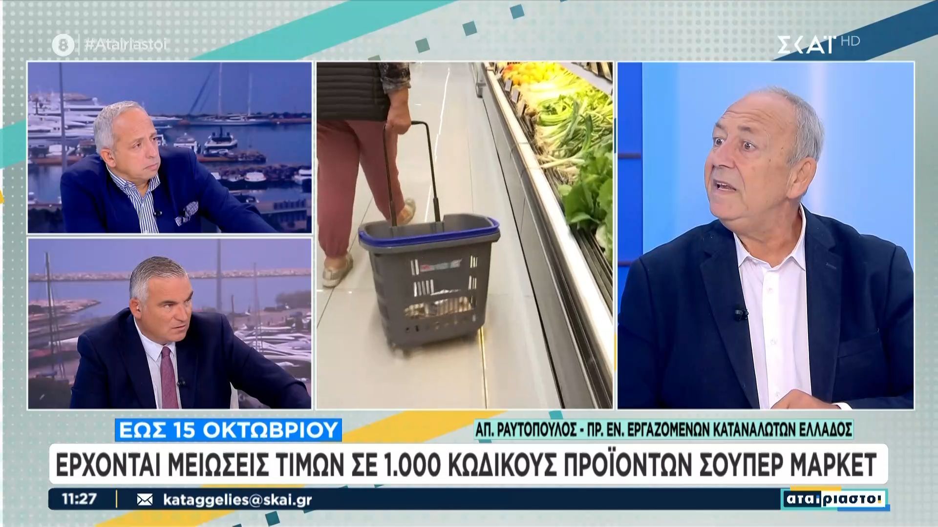 Ο Πρόεδρος της Ένωσης Εργαζομένων Καταναλωτών Ελλάδος, Απόστολος Ραυτόπουλος, προειδοποιεί για την ύπαρξη παραπλανητικών προσφορών που συνεχίζουν να κυκλοφορούν στην αγορά. Παρά τις ανακοινώσεις για μειώσεις τιμών σε 1.000 κωδικούς προϊόντων σούπερ μάρκετ, οι καταναλωτές πρέπει να είναι προσεκτικοί και να ελέγχουν τις πραγματικές τιμές.