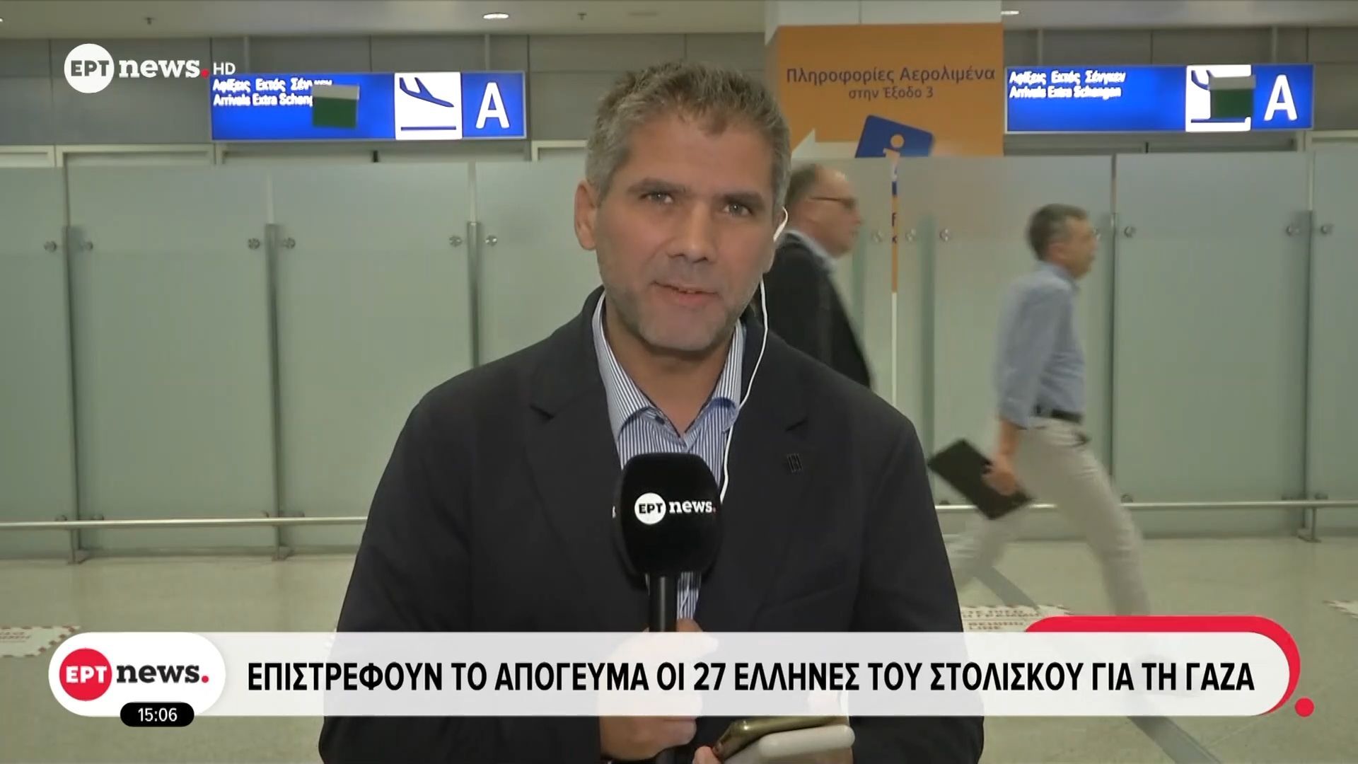 Σήμερα το απόγευμα αναμένεται η επιστροφή των 27 Ελλήνων του στολίσκου από τη Γάζα, μετά από μία δύσκολη αποστολή. Οι συμμετέχοντες, οι οποίοι είχαν μεταφέρει ανθρωπιστική βοήθεια, είναι σε καλή κατάσταση και ανυπομονούν να επιστρέψουν στην πατρίδα τους.