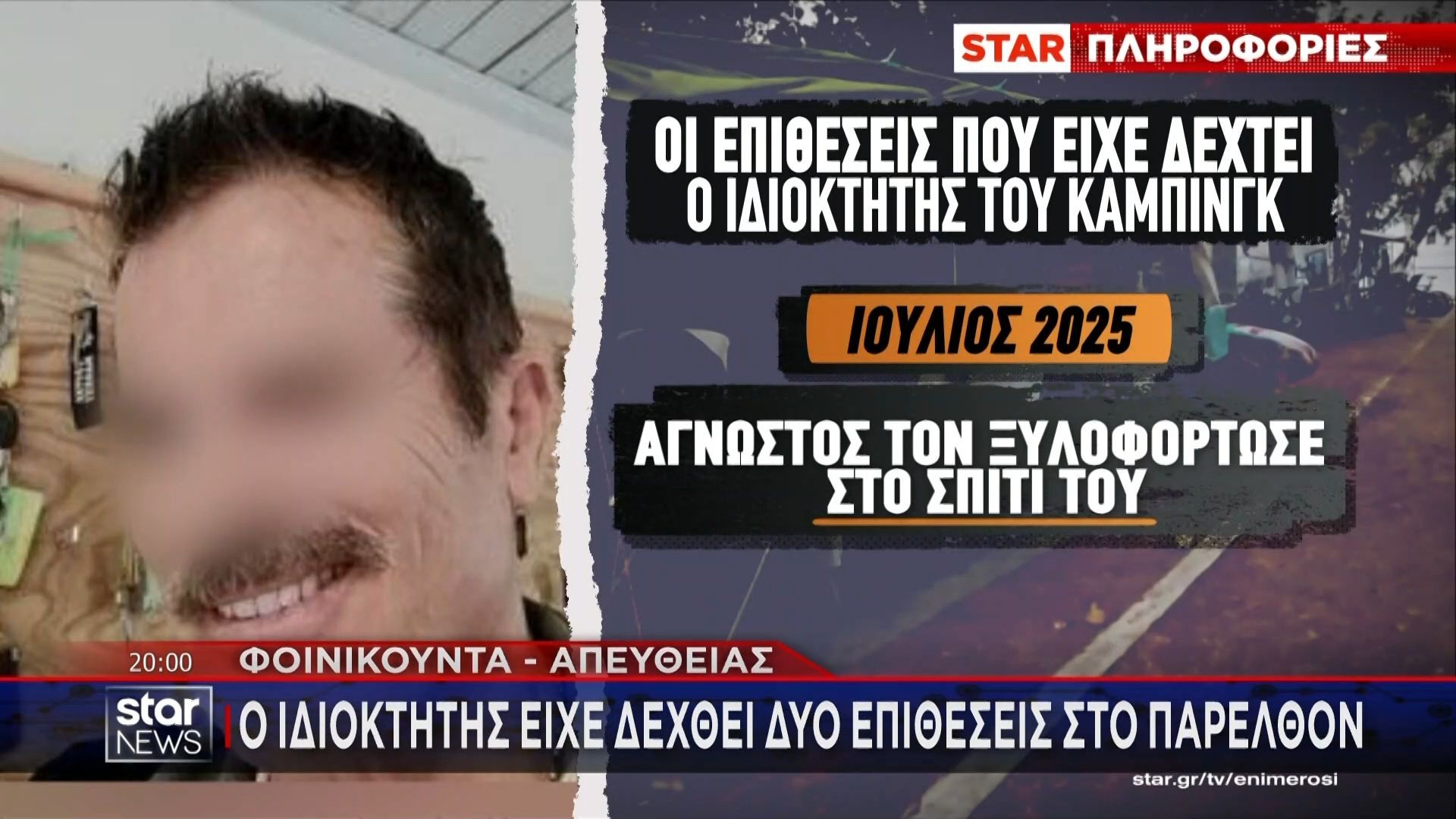 Ο ιδιοκτήτης του κάμπινγκ στη Φοινικούντα έχει βρεθεί στο επίκεντρο της προσοχής, καθώς αποκαλύπτεται ότι έχει δεχθεί δύο επιθέσεις στο παρελθόν. Οι επιθέσεις αυτές έχουν προκαλέσει ανησυχία στην τοπική κοινωνία και εγείρουν ερωτήματα για την ασφάλεια της περιοχής.
