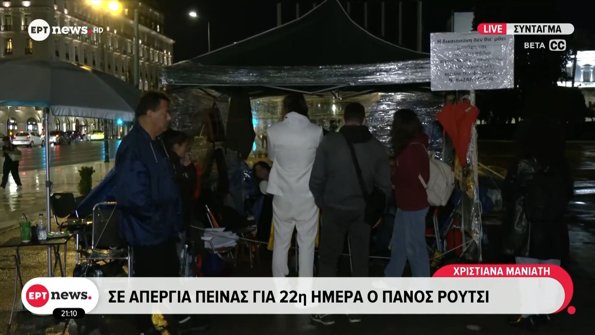 Ο Πάνος Ρούτσι διανύει την 22η ημέρα της απεργίας πείνας του, διεκδικώντας δικαιοσύνη για τον θάνατο του γιου του. Παρά την εξαιρετικά δύσκολη κατάσταση της υγείας του, παραμένει αποφασισμένος στον αγώνα του, που έχει προκαλέσει μεγάλη δημοσιότητα και ενδιαφέρον στην κοινή γνώμη.