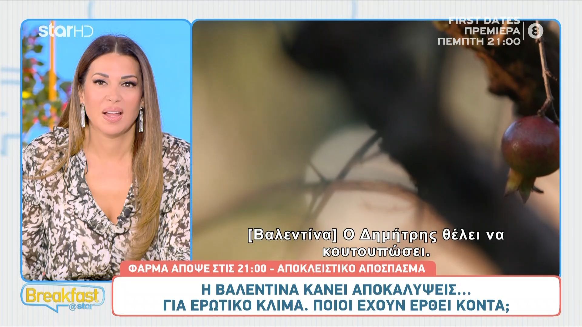 Στο σημερινό επεισόδιο της δημοφιλούς εκπομπής, η Βαλεντίνα αποκαλύπτει τις τελευταίες εξελίξεις γύρω από το ερωτικό κλίμα που επικρατεί στην «Φάρμα». Οι σχέσεις μεταξύ των συμμετεχόντων φαίνεται να περνούν από συμπληγάδες, με έντονες συζητήσεις και συναισθηματικές αναταράξεις να κρατούν το κοινό σε αγωνία.