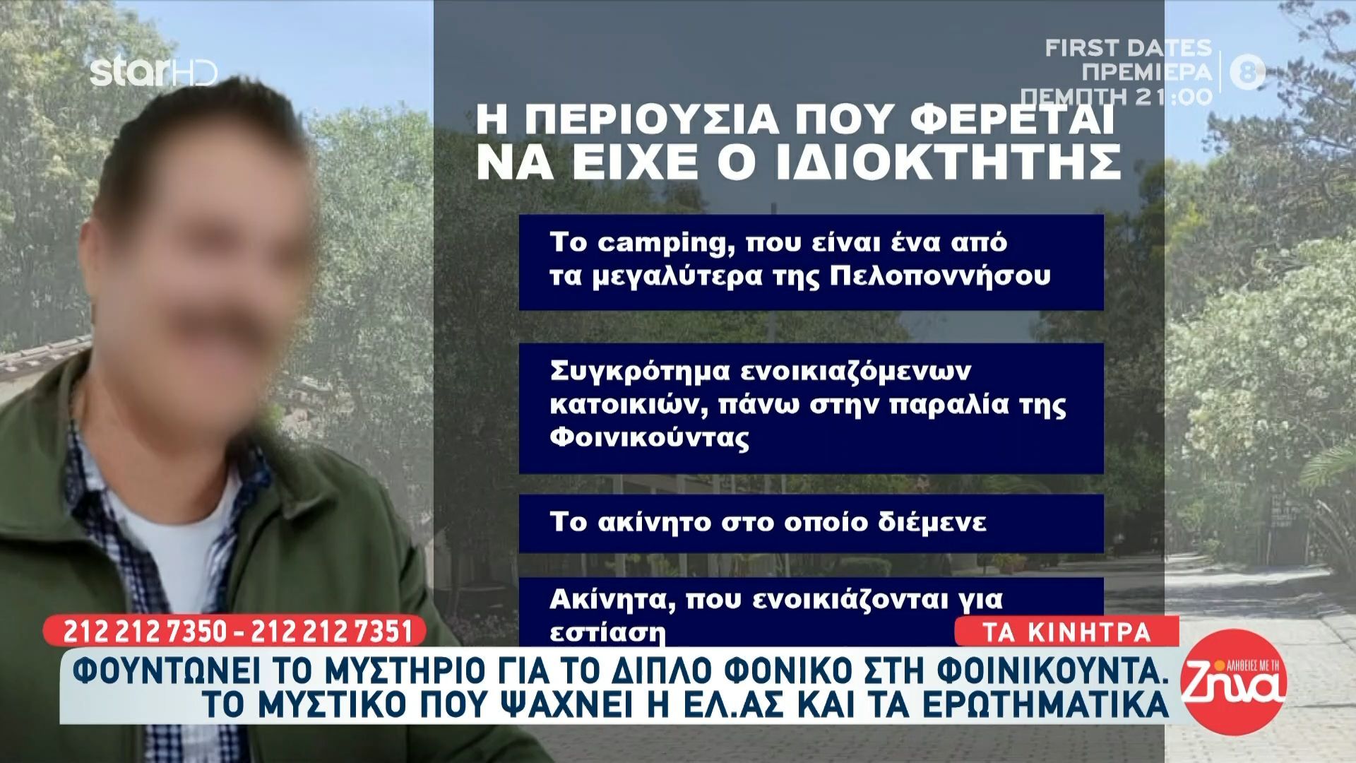 Ο ιδιοκτήτης του κάμπινγκ βρέθηκε δολοφονημένος και οι Αρχές εξετάζουν την υπόθεση, εστιάζοντας στα οικονομικά κίνητρα πίσω από το έγκλημα. Ο τελευταίος είχε ορίσει ως κληρονόμους τον ανηψιό του και τον επιστάτη του κάμπινγκ, γεγονός που εγείρει ερωτήματα σχετικά με τις σχέσεις τους.