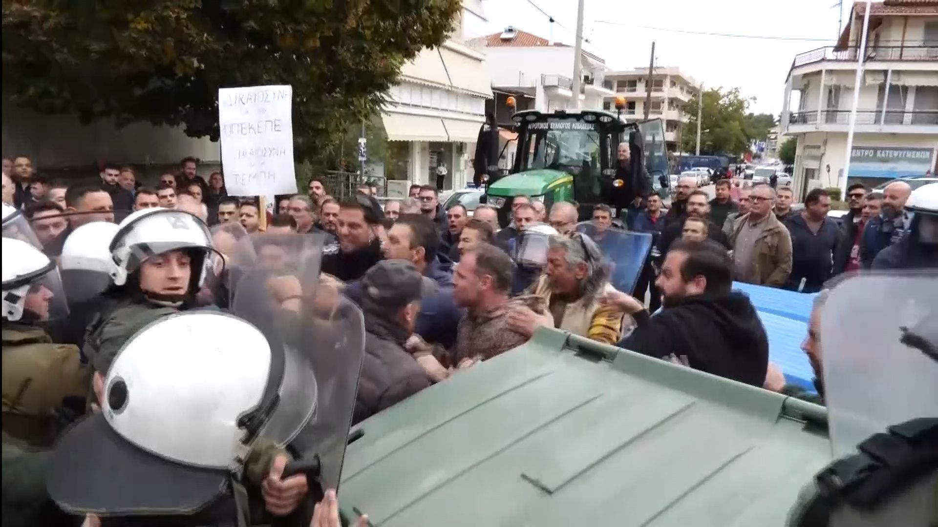 Η κατάσταση κλιμακώθηκε όταν οι αγρότες επιχείρησαν να σπάσουν τον αστυνομικό κλοιό με τα τρακτέρ τους, λίγα μέτρα από την αίθουσα παρουσίασης του Τοπικού Σχεδίου Ανάπτυξης. Η ηγεσία του Υπουργείου Αγροτικής Ανάπτυξης παρακολουθούσε από κοντά τις εξελίξεις, που οδήγησαν σε επεισόδια και διαμαρτυρίες.