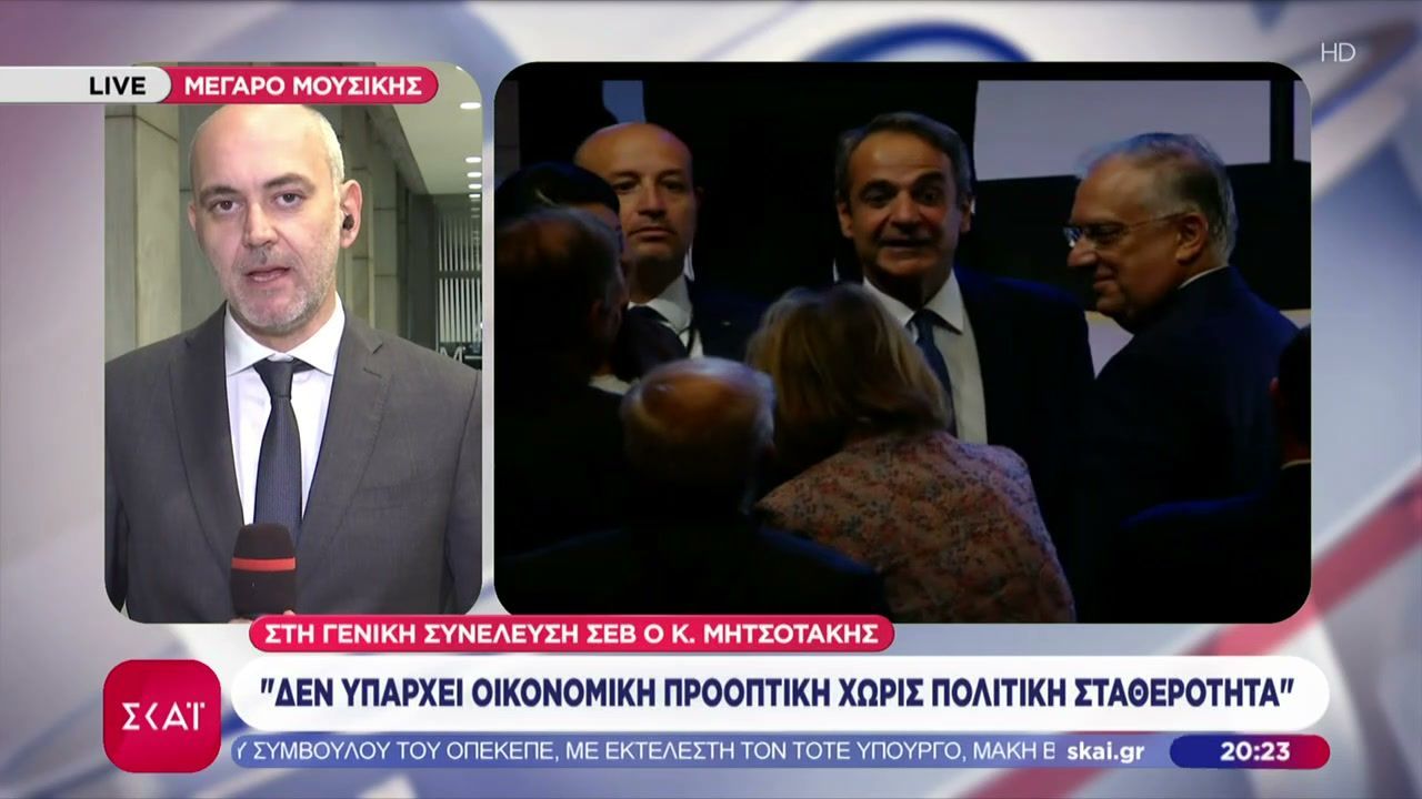 Ο Πρωθυπουργός Κυριάκος Μητσοτάκης συμμετείχε στη γενική συνέλευση του Συνδέσμου Επιχειρήσεων και Βιομηχανιών, όπου τόνισε τη σημασία της πολιτικής σταθερότητας για την οικονομική ανάπτυξη της χώρας. Αναφέρθηκε στην ανάγκη συνεργασίας μεταξύ του δημόσιου και του ιδιωτικού τομέα, προκειμένου να δημιουργηθούν οι κατάλληλες συνθήκες για επενδύσεις και βιώσιμη ανάπτυξη.