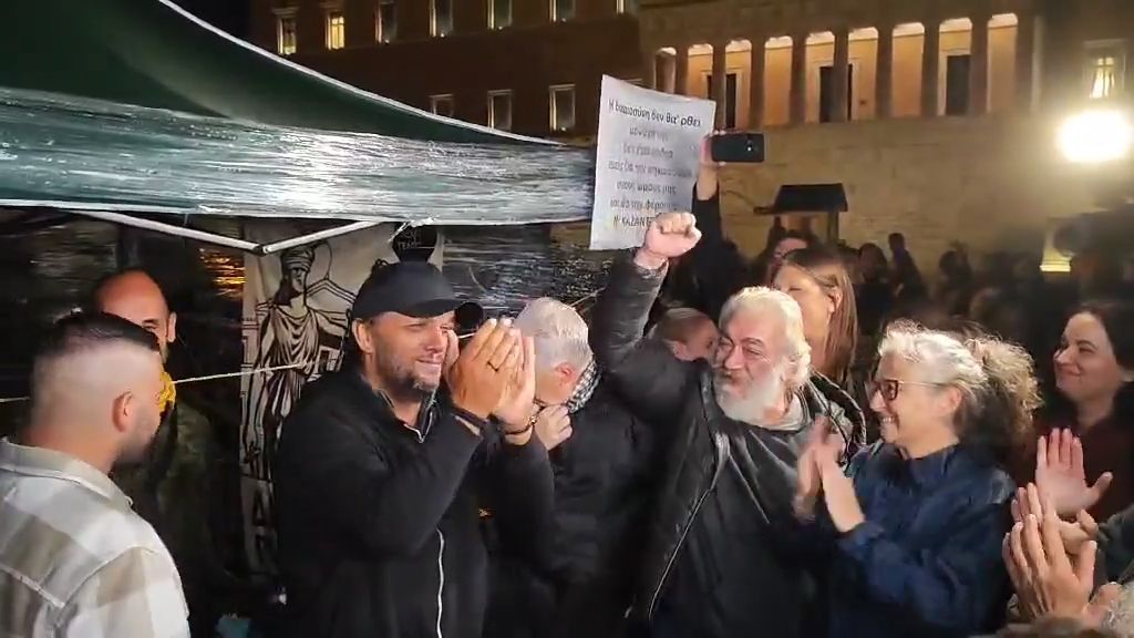Στο Σύνταγμα, πλήθος κόσμου συγκεντρώθηκε για να γιορτάσει την απόφαση του Πάνου Ρούτσι να σταματήσει την απεργία πείνας που είχε ξεκινήσει. Η ανακοίνωση του προκάλεσε ενθουσιασμό και ανακούφιση στους υποστηρικτές του, οι οποίοι φώναζαν συνθήματα και έδειχναν την αλληλεγγύη τους.