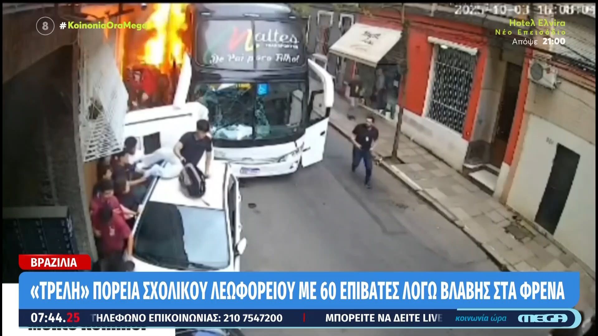 Στη Βραζιλία, ένα σχολικό λεωφορείο συγκρούστηκε με πέντε αυτοκίνητα, προκαλώντας φωτιά στο όχημα. Στο λεωφορείο επέβαιναν 60 παιδιά, τα οποία ευτυχώς δεν φέρουν σοβαρούς τραυματισμούς και είναι καλά στην υγεία τους.