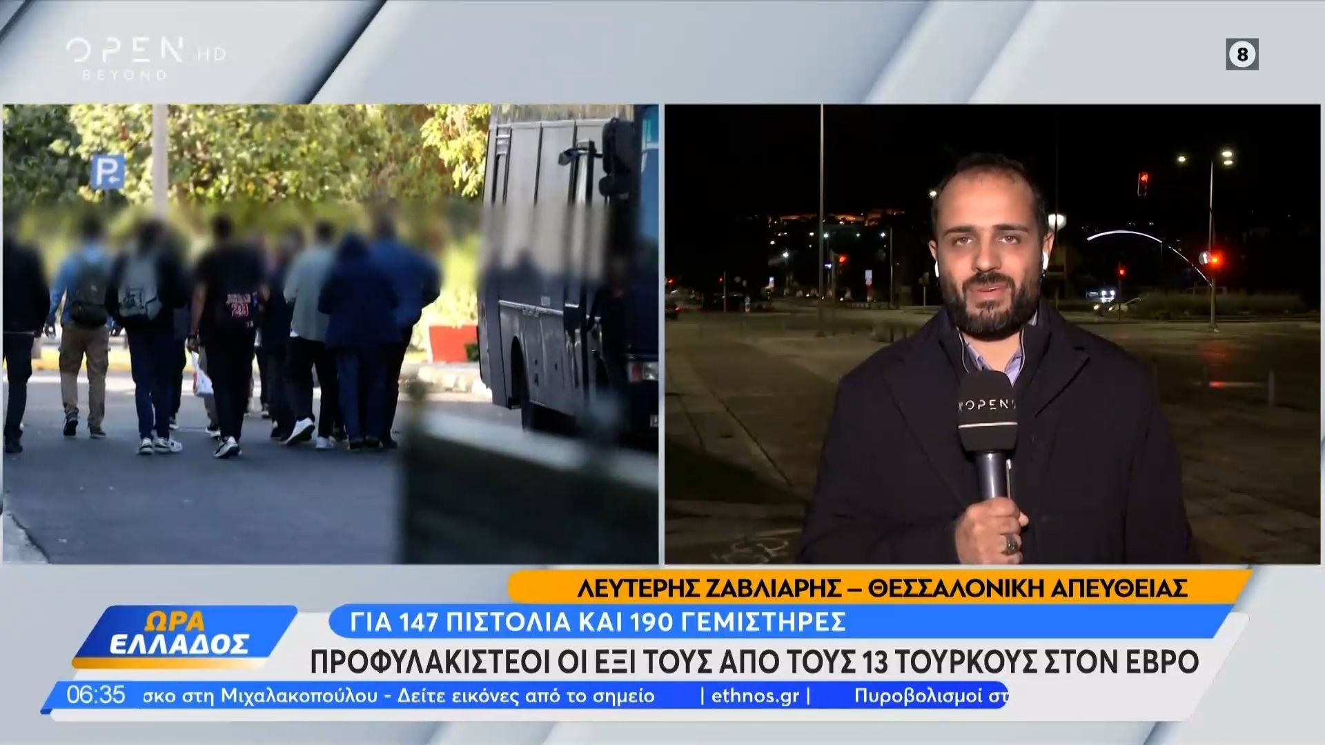 Προφυλακιστέοι κρίθηκαν έξι από τους δεκατρείς Τούρκους, οι οποίοι συνελήφθησαν στον Έβρο την περασμένη Παρασκευή. Οι συλληφθέντες εντοπίστηκαν με 147 πιστόλια και 191 γεμιστήρες, γεγονός που προκαλεί ανησυχία σχετικά με τη διακίνηση όπλων στην περιοχή.