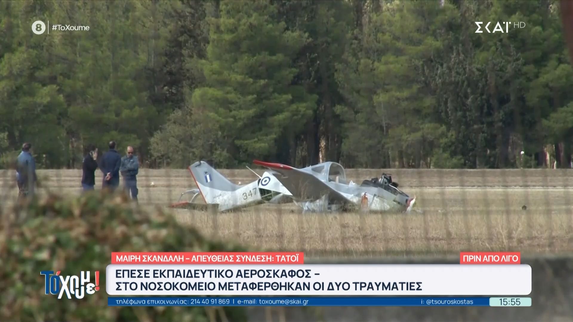 Στο Τατόι σημειώθηκε χθες το μεσημέρι πτώση εκπαιδευτικού αεροσκάφους, προκαλώντας σοβαρό επεισόδιο. Δύο άτομα, οι επιβαίνοντες του αεροσκάφους, μεταφέρθηκαν στο νοσοκομείο με τις αισθήσεις τους και είναι υπό ιατρική παρακολούθηση.