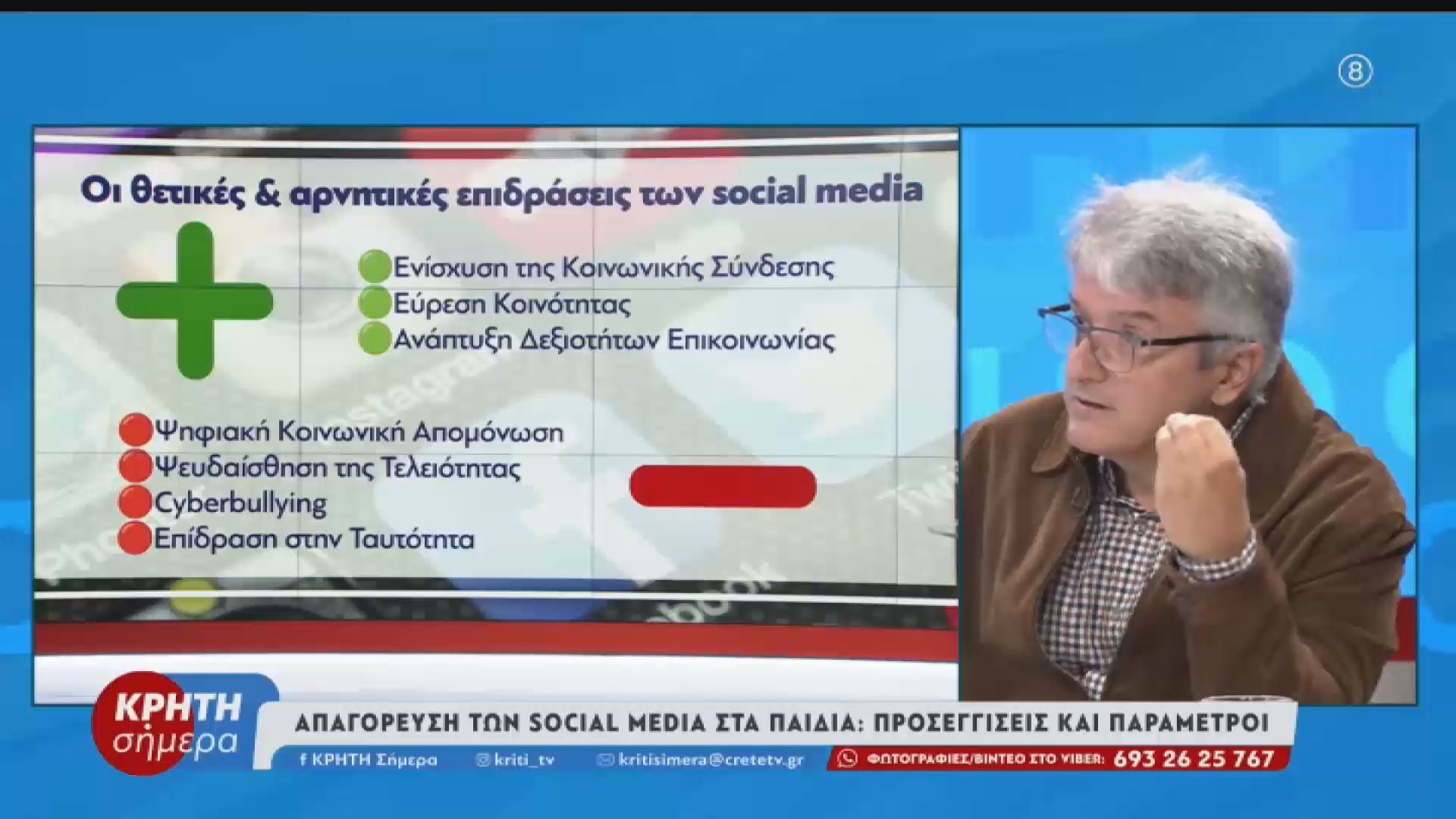 Η χρήση των social media από παιδιά κάτω των 16 ετών αποτελεί ένα αμφιλεγόμενο θέμα, καθώς οι θετικές επιδράσεις τους μπορεί να συνοδεύονται από κινδύνους. Ο κλινικός ψυχολόγος Νίκος Παρπανικολάου αναλύει τις διάφορες όψεις αυτής της χρήσης, υπογραμμίζοντας πώς οι κοινωνικές πλατφόρμες μπορούν να επηρεάσουν την ψυχολογία και την κοινωνική ανάπτυξη των παιδιών.