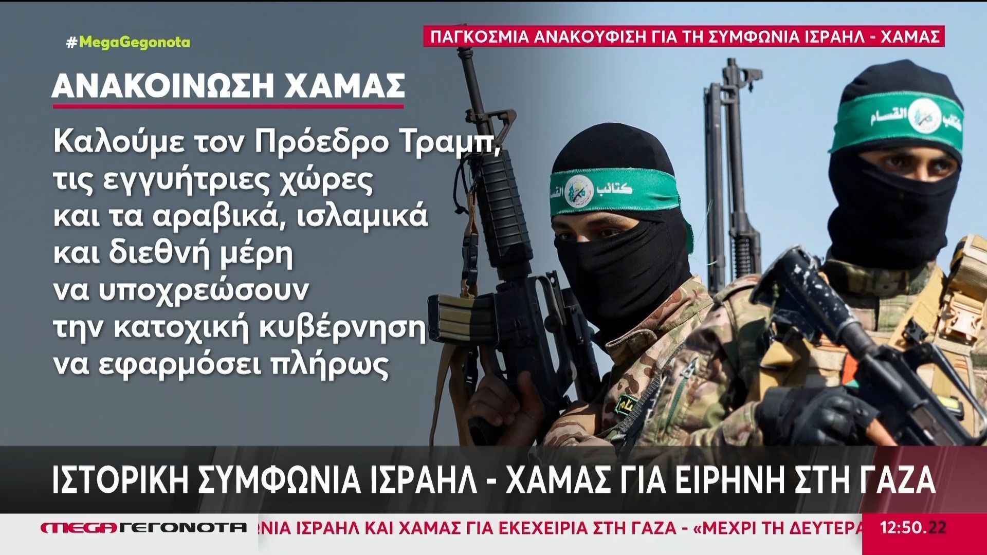 Η ιστορική συμφωνία για κατάπαυση του πυρός μεταξύ Ισραήλ και Χαμάς έχει πλέον τεθεί σε εφαρμογή, επιφέροντας ελπίδες για την αποκατάσταση της ειρήνης στην περιοχή. Στο πλαίσιο της συμφωνίας, πραγματοποιείται η απελευθέρωση ομήρων, τόσο ζωντανών όσο και νεκρών, από τις δύο πλευρές, ενισχύοντας την αμοιβαία εμπιστοσύνη.