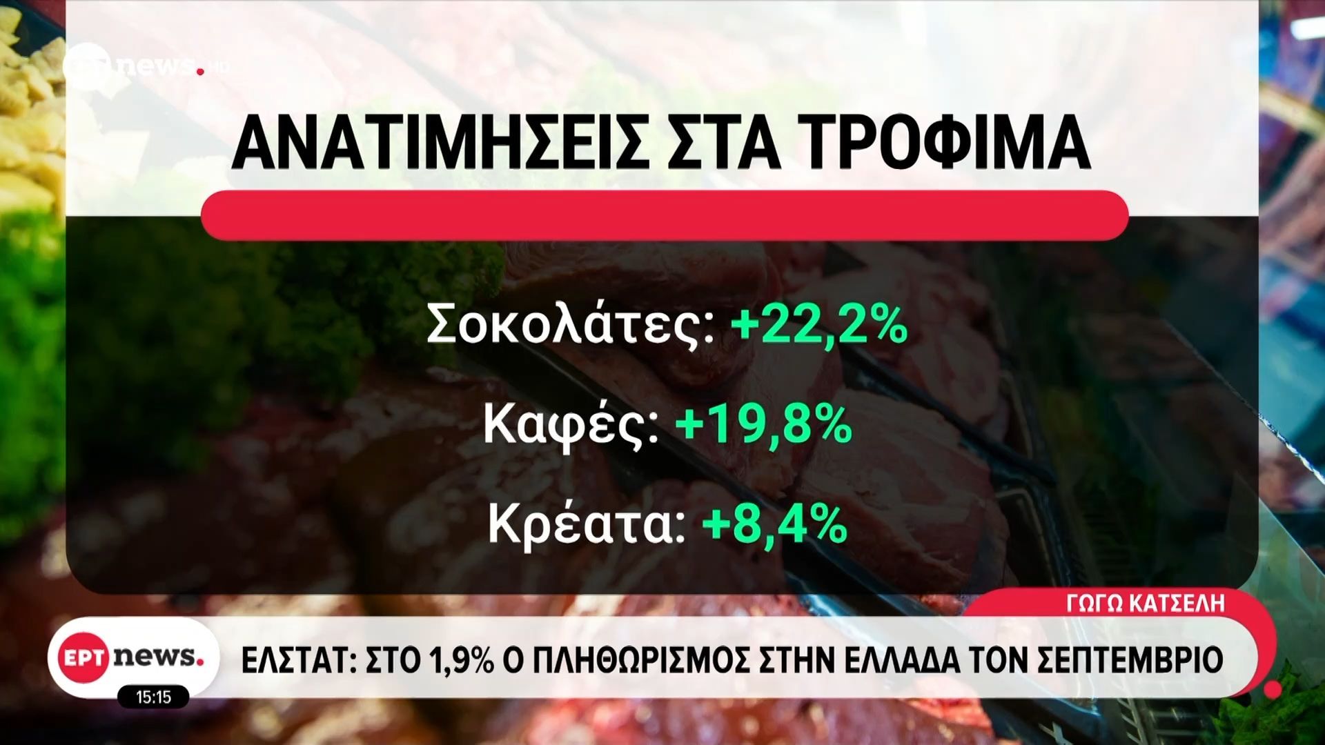 ΕΛΣΤΑΤ: Στο 1,9% ο πληθωρισμός στην Ελλάδα τον Σεπτέμβριο