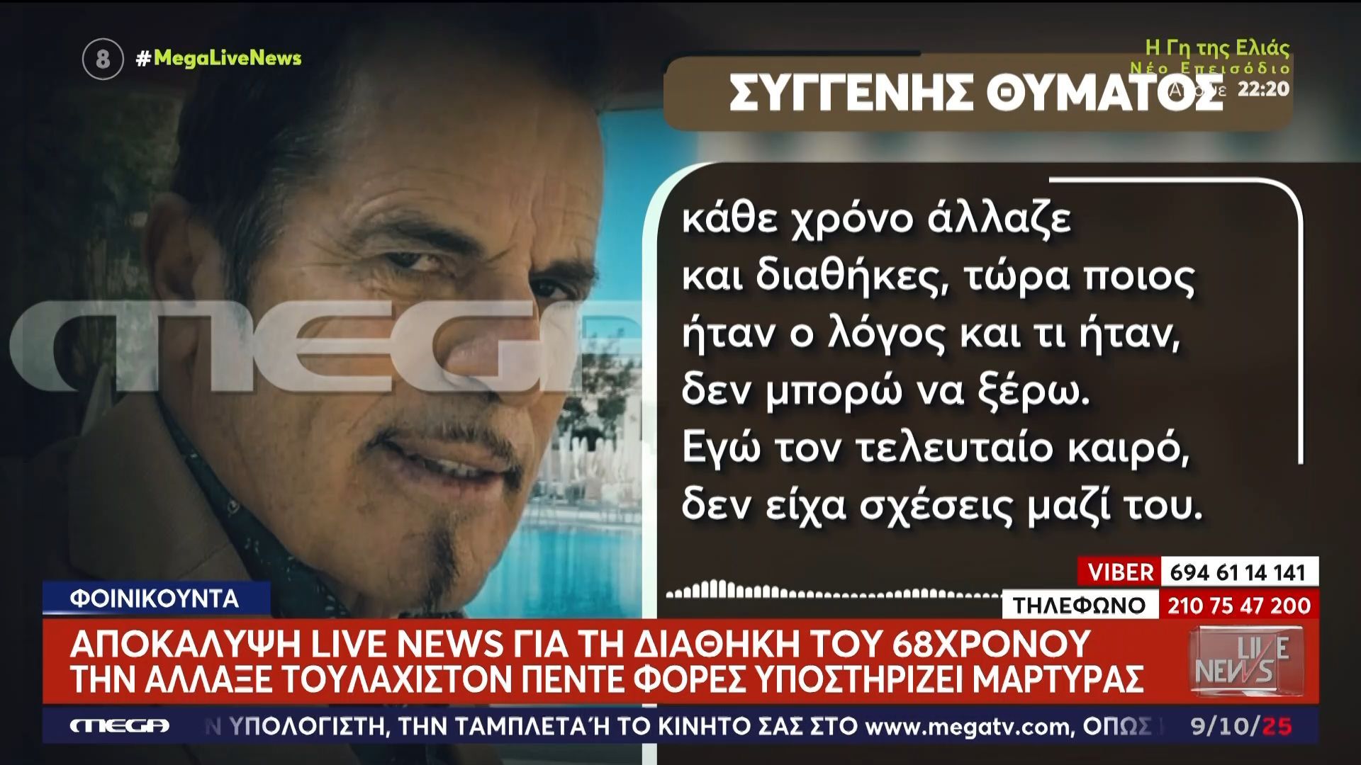 Μάρτυρας σε υπόθεση που αφορά τη διαθήκη ενός 68χρονου στην Φοινικούντα υποστηρίζει ότι ο εκλιπών άλλαξε το κείμενο της διαθήκης του συνολικά πέντε φορές. Κάθε χρόνο, φέρεται να προχωρούσε σε αναθεωρήσεις, γεγονός που εγείρει ερωτήματα σχετικά με τις προθέσεις του και τις συνθήκες κάτω από τις οποίες ελήφθησαν αυτές οι αποφάσεις.