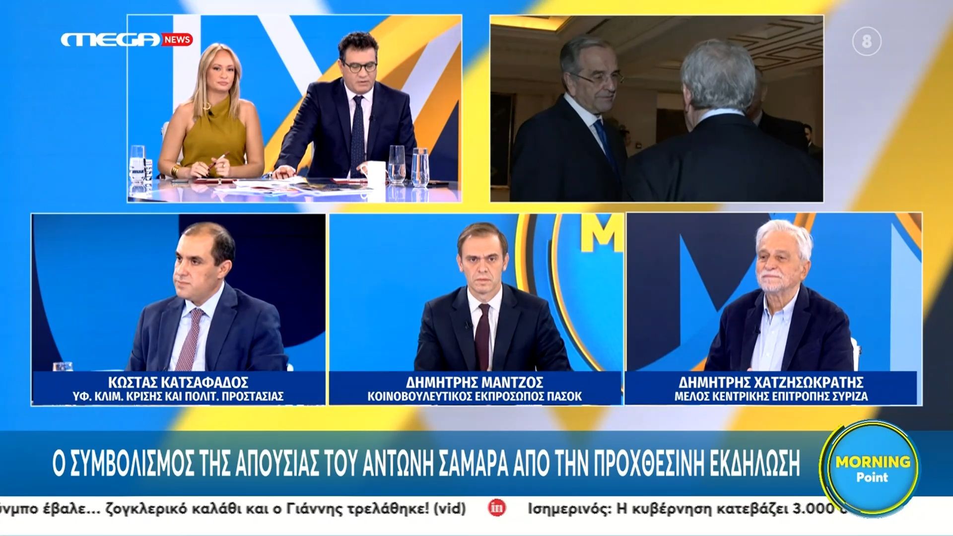Ο υφυπουργός Κώστας Κατσαφάδος αναφέρθηκε στην απουσία του Αντώνη Σαμαρά από πρόσφατη εκδήλωση, τονίζοντας τη σημασία της παρουσίας του για τη Νέα Δημοκρατία. Μάλιστα, υπογράμμισε ότι κανένα στέλεχος της παράταξης δεν θα ήθελε να αποκλείσει την πιθανότητα επιστροφής του.