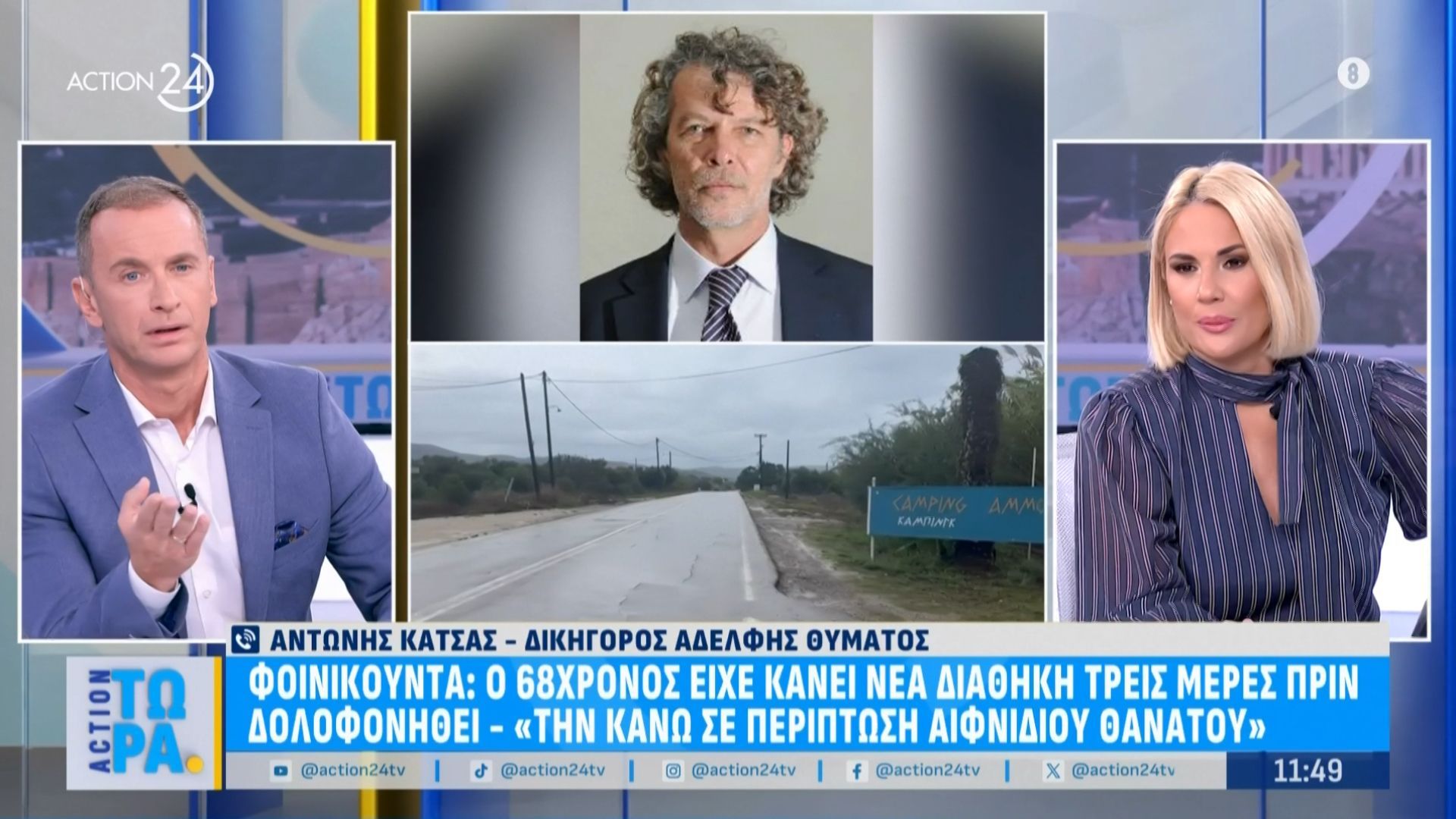 Η υπόθεση του 68χρονου θύματος δολοφονίας στη Φοινικούντα έχει πάρει νέα τροπή με την αποκάλυψη της διαθήκης του. Σύμφωνα με πληροφορίες, ο άνδρας είχε συντάξει το έγγραφο αυτό, προκειμένου να προετοιμαστεί για τυχόν αιφνίδιο θάνατο, γεγονός που έχει προκαλέσει ανησυχία στην τοπική κοινωνία.