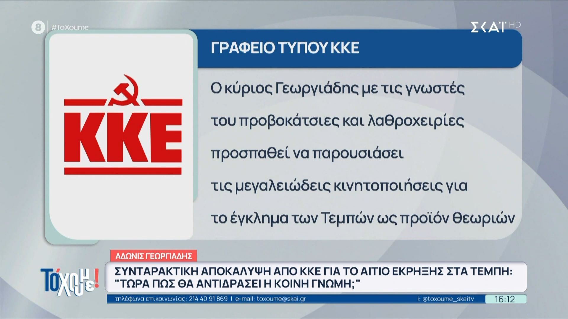 Η ανακοίνωση του ΚΚΕ σχετικά με την ανάρτηση του Άδωνι Γεωργιάδη έχει προκαλέσει αίσθηση, καθώς χαρακτηρίζεται ως προβοκατόρικη. Το κόμμα επεσήμανε ότι δεν έχει γίνει λόγος για θεωρίες συνωμοσίας σχετικά με την πρόσφατη έκρηξη στα Τέμπη, καλώντας τη δημόσια συζήτηση να παραμείνει εστιασμένη στα πραγματικά αίτια του συμβάντος.