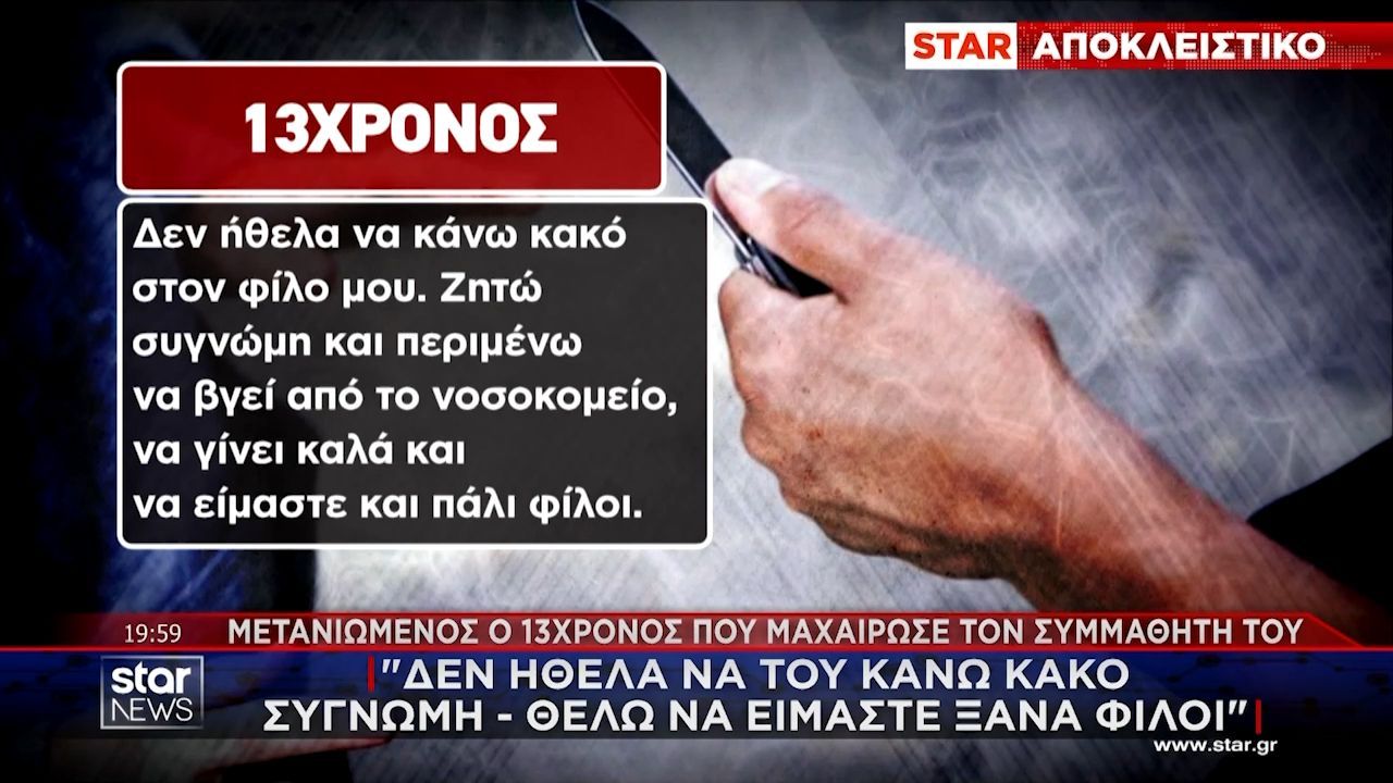 Ένας 13χρονος μαθητής έχει εκφράσει την πλήρη μετάνοιά του για την επίθεση που διαπράχθηκε σε βάρος του συμμαθητή του στην Τρίπολη. Το περιστατικό, που συγκλόνισε την τοπική κοινωνία, συνέβη κατά τη διάρκεια του σχολικού ωραρίου και προκάλεσε σοβαρές αντιδράσεις από γονείς και εκπαιδευτικούς.