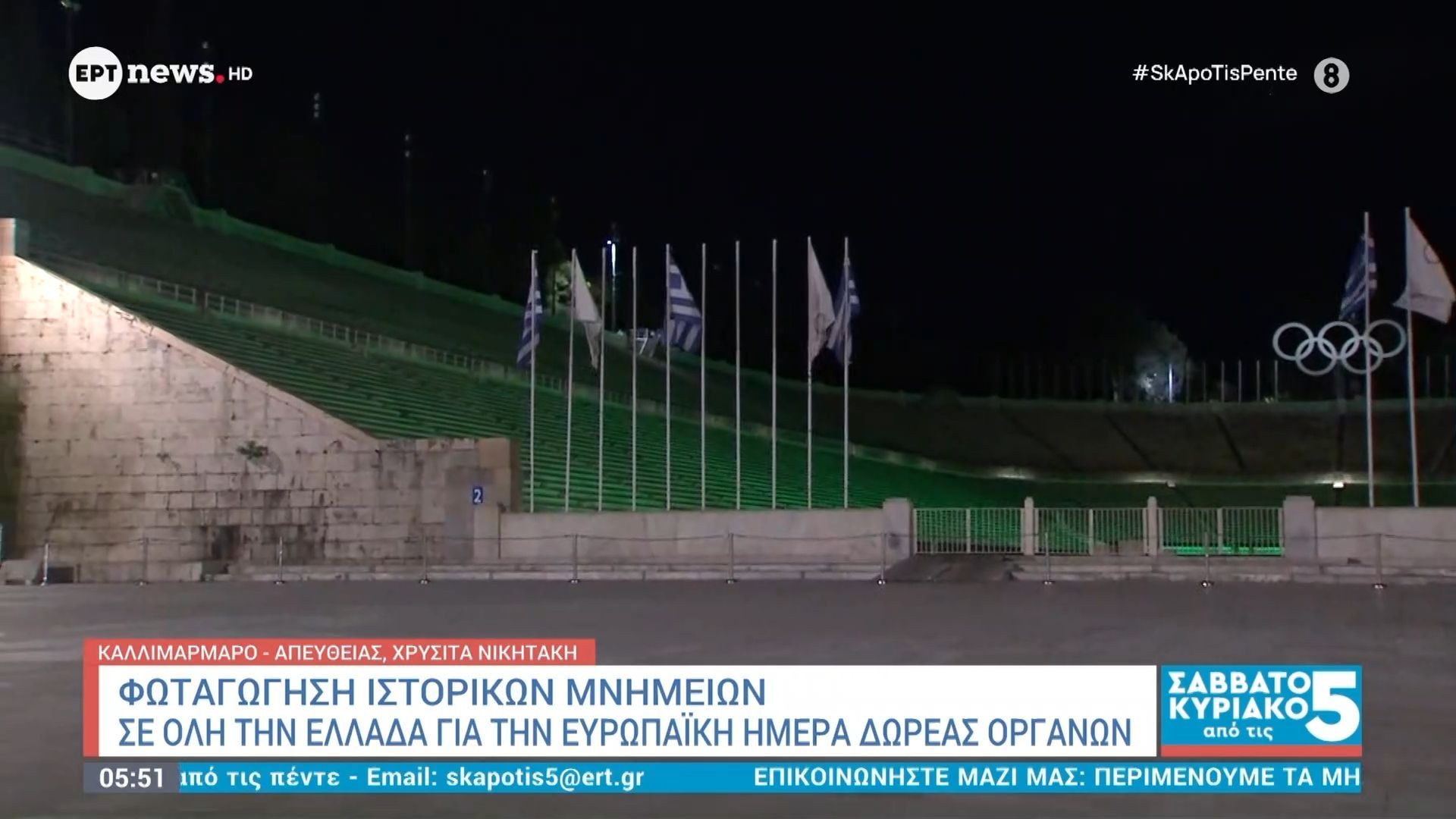 Ιστορικά μνημεία φωτίζονται σε όλη την Ελλάδα για να προωθήσουν τη δωρεά οργάνων και να ευαισθητοποιήσουν τους πολίτες για την προσφορά ζωής