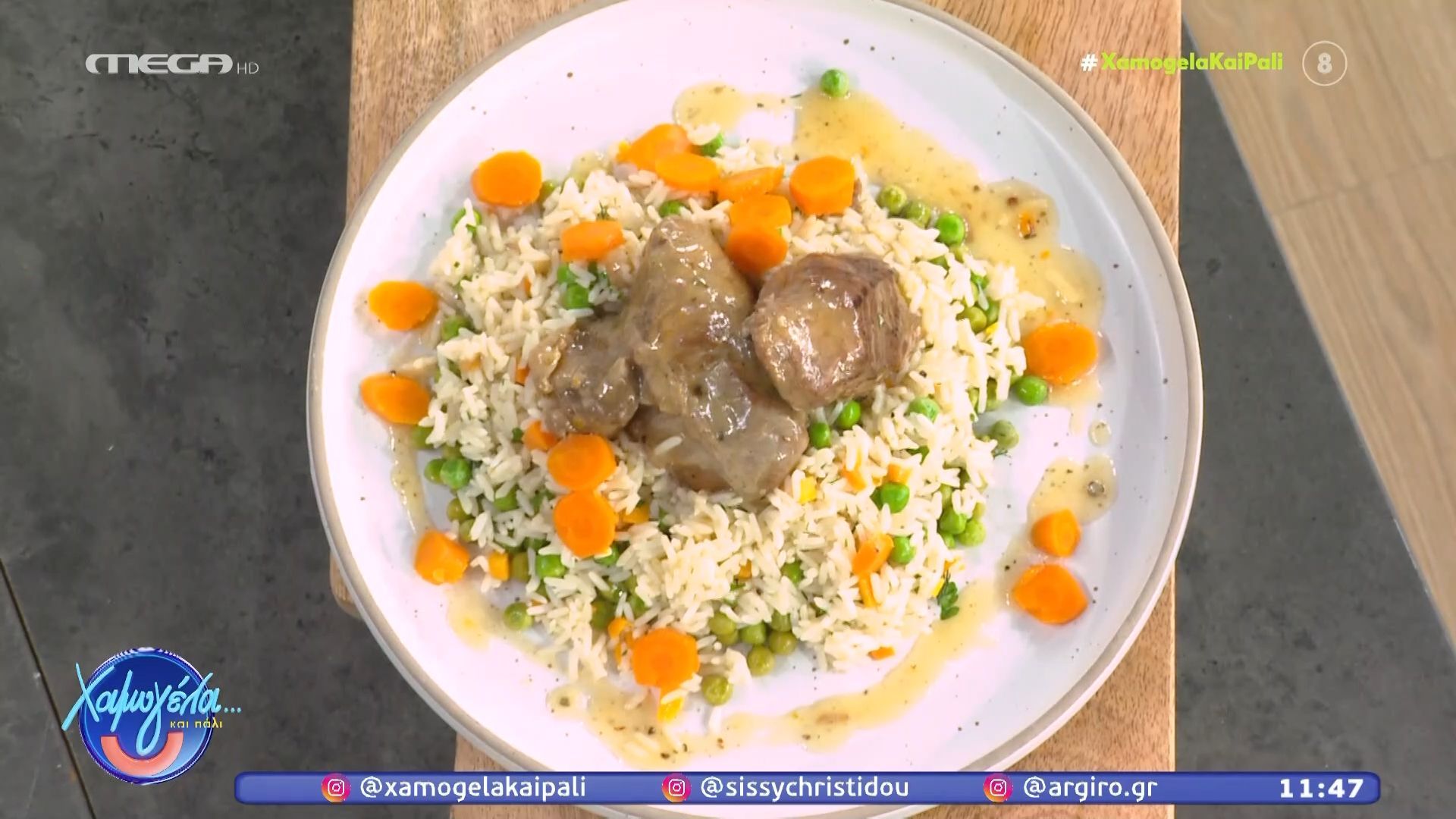 Μοσχάρι λεμονάτο με πολύχρωμο ρύζι