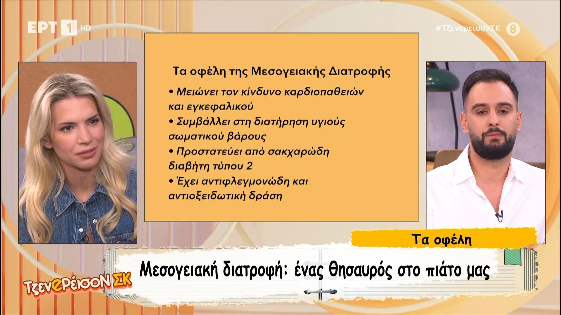 Ο διατροφολόγος Παναγιώτης Κεμάλης αναλύει τη σημασία της μεσογειακής διατροφής για τη συνολική υγεία. Επισημαίνει ότι αυτή η διατροφή, πλούσια σε φρούτα, λαχανικά, ελαιόλαδο και ψάρι, συμβάλλει στη μείωση κινδύνων για καρδιοαγγειακές παθήσεις και άλλες ασθένειες.