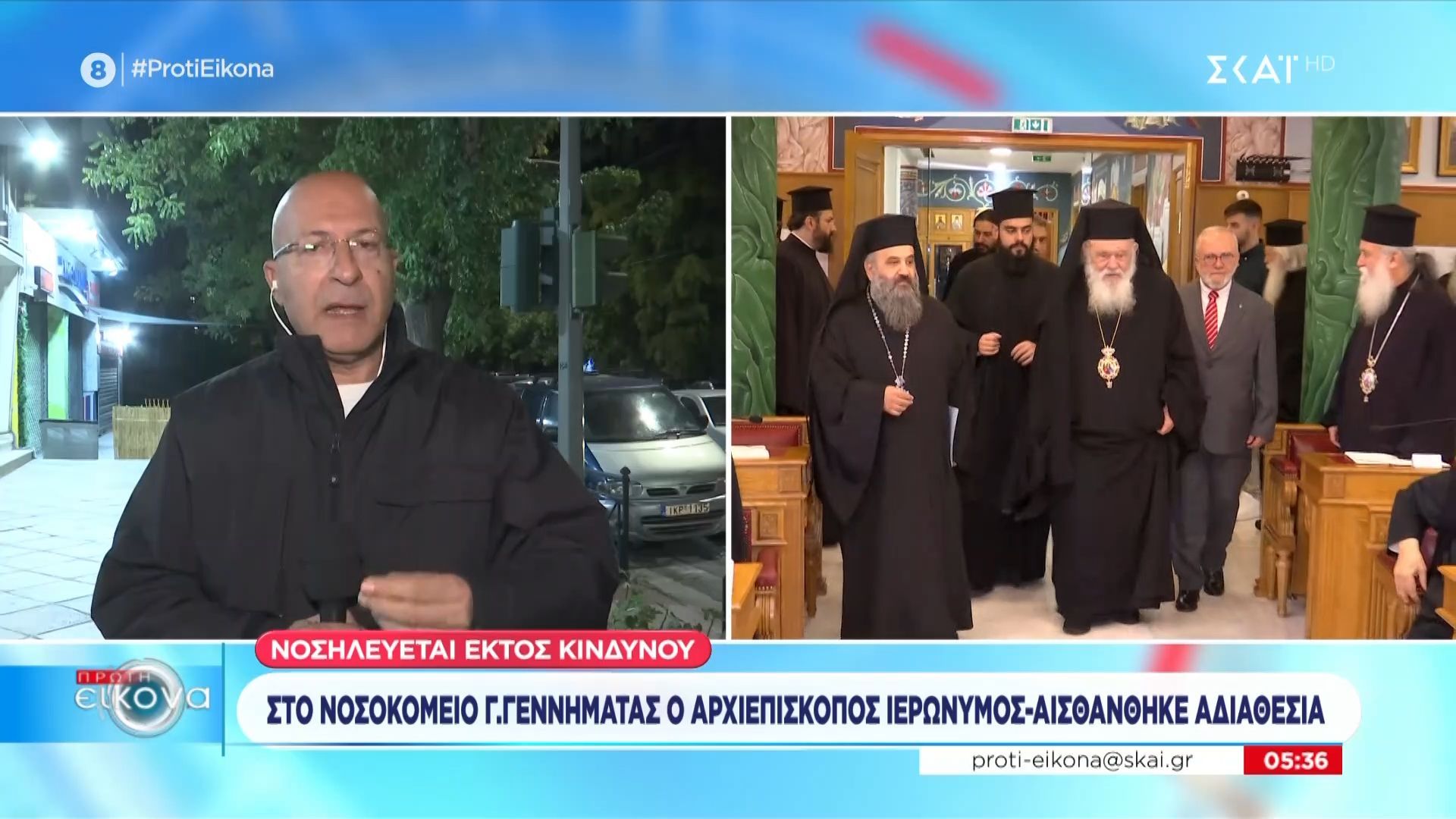 Ο Αρχιεπίσκοπος Ιερώνυμος εισήχθη στο νοσοκομείο Γ. Γεννηματάς έπειτα από αδιαθεσία που ένιωσε κατά τη διάρκεια δημόσιας εμφάνισης. Οι ιατρικές εξετάσεις που υποβλήθηκε δείχνουν ότι δεν υπάρχει λόγος ανησυχίας, ωστόσο οι γιατροί του θα παρακολουθήσουν την κατάσταση της υγείας του.