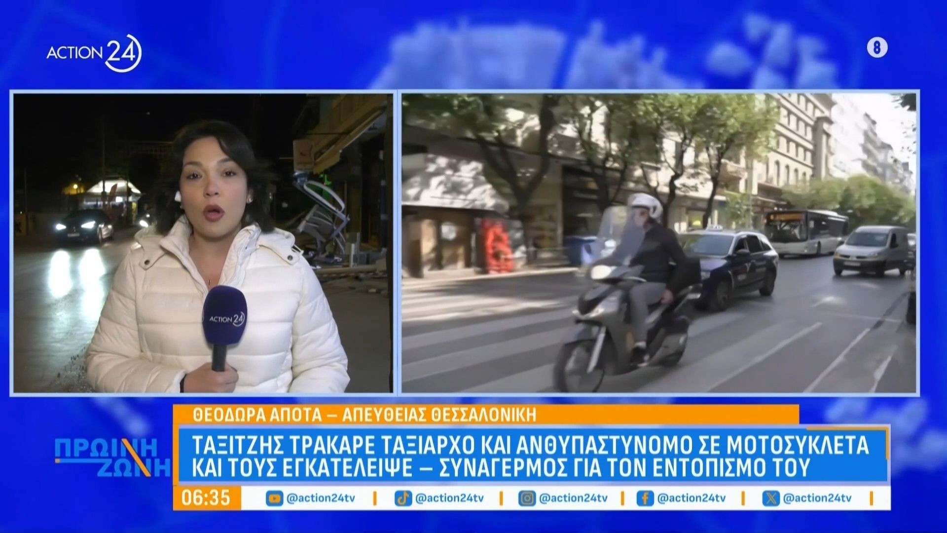 Στην Θεσσαλονίκη, ένα σοβαρό περιστατικό σημειώθηκε όταν οδηγός ταξί παρέσυρε δύο αστυνομικούς, έναν Ταξίαρχο και έναν Ανθυπαστυνόμο, οι οποίοι επέβαιναν σε μοτοσυκλέτα. Μετά την πρόσκρουση, ο οδηγός εγκατέλειψε τη σκηνή του ατυχήματος, προκαλώντας ανησυχία και κινητοποίηση των αρχών.